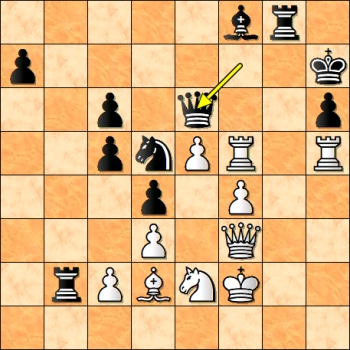Viděl jsem, že nejde 24…Sxf3 25.Sxf3 Vxd2?? 26.Ve8#. Pokračoval jsem 24…f5 25.Sc1 a hrálo se dál. Počítač ukázal 24…Sxf3 25.Sxf3 Je5!! -+ a černý získá a udrží figuru víc.