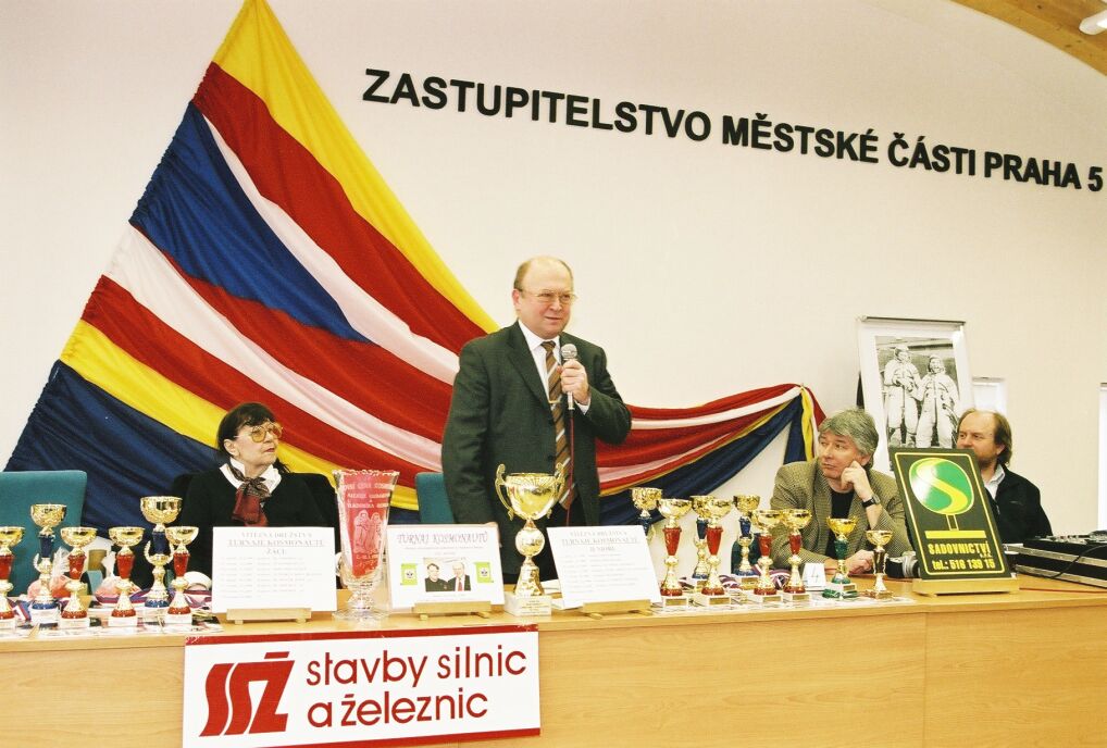 Vyhlašování výsledků, pod hasicím přístrojem Zdeněk Chybný, okolo