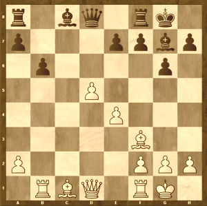 Ten tam však stále ještě byl :-) - Bílý na tahu vyhraje, řešení. Stalo se 20.cxb4 Dd5 21.Sh6 Kg8 22.Sd2? stále ještě bylo možné zdvojení figur na háčku, ale čekal jsem, že když to nezatáhl poprvé, tak to již nepřijde 22…Jxb4! a černý je z nejhoršího venku. Bílý se dostal do silné časovky a chyby přišly za nedlouho.