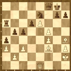 Zvládnete najít postup, kterým mohl bílý na tahu vyhrát? Řešení. Po vychytávce Ládi Chmelíka 27.gxh4? Dd6 však černý získal dostatečnou protihru a brzy se opakovaly tahy. 1,5-2,5
