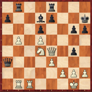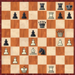 V partii jsem zahrál 27.Vc7, což je v zásadě myšlenka dobrá, akorát přehlíží tah 28.Vbc8! s hrozbou matu na c1 a vypouští značnou část výhody. Zkuste můj 27. tah vylepšit, je to moc hezká idea. Řešení se zobrazí při najetí sem.