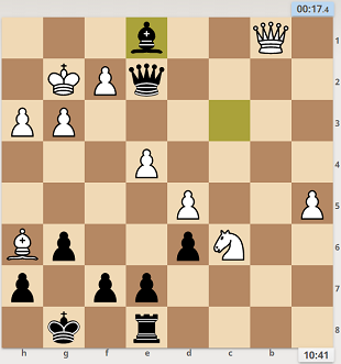 Tajemný pan Chybny_Zdenek nevyužil šanci k výhře, ale později dostal ještě jednu. Ke své smůle ale nedokázal zmatit soupeře včas, a ačkoliv jsou hranice zavřené, navštívil populární prázdninovou destinaci Flagistán... Co nestihl? Bílý na tahu vyhraje. Řešení se zobrazí při najetí sem.