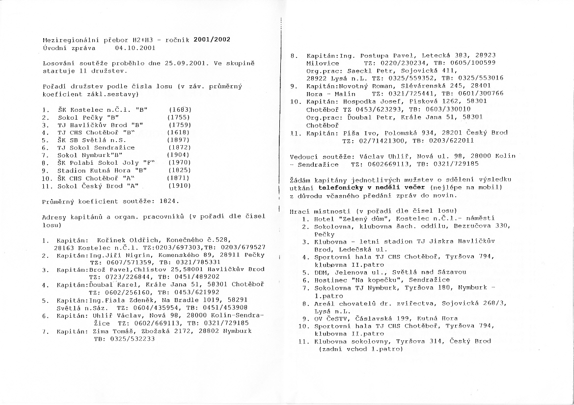 IX 2000-I 2001 | Přebor oddílu | Český Brod | výsledky sm | propozice | |||