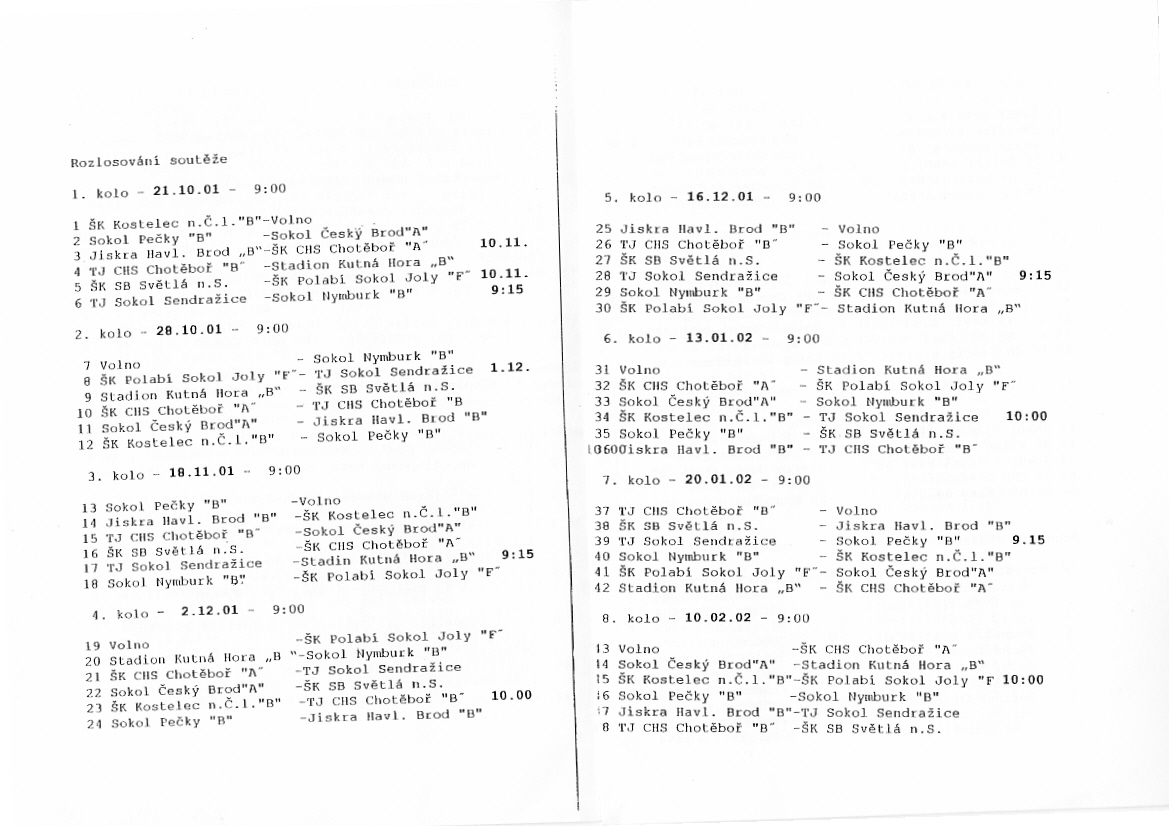 2000/2001 | Regionální přebor | B tým | kola: 6. 7. 8. 9. 10. 11. | ||||