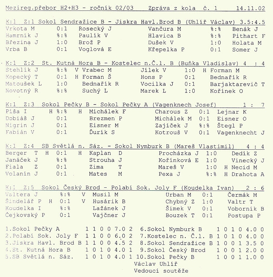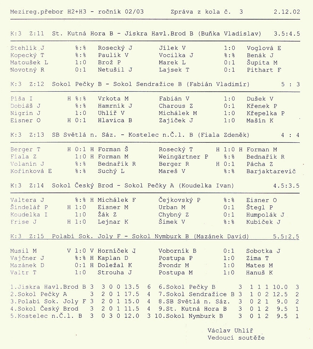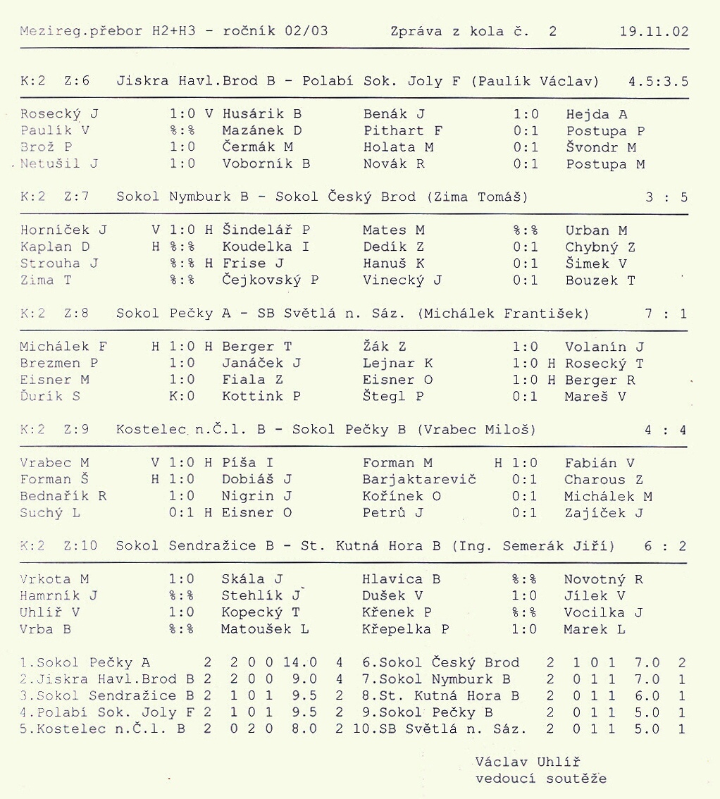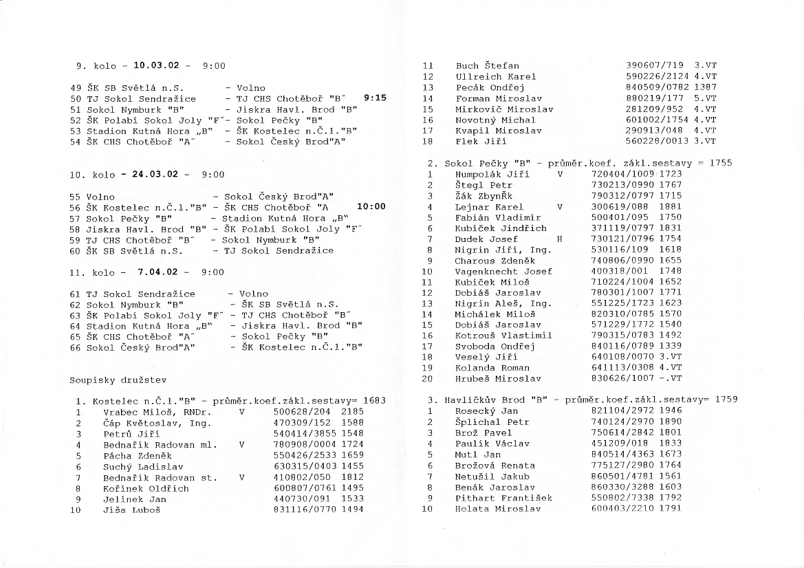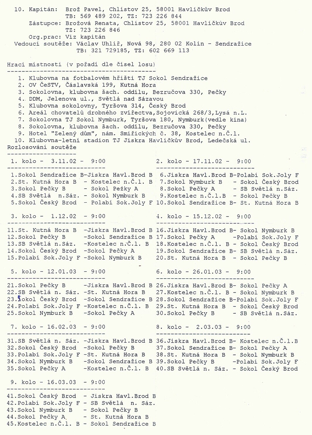 IX – XII ? 2002 | Přebor oddílu mládeže | Český Brod | d. 1 2 3 4 | ||||