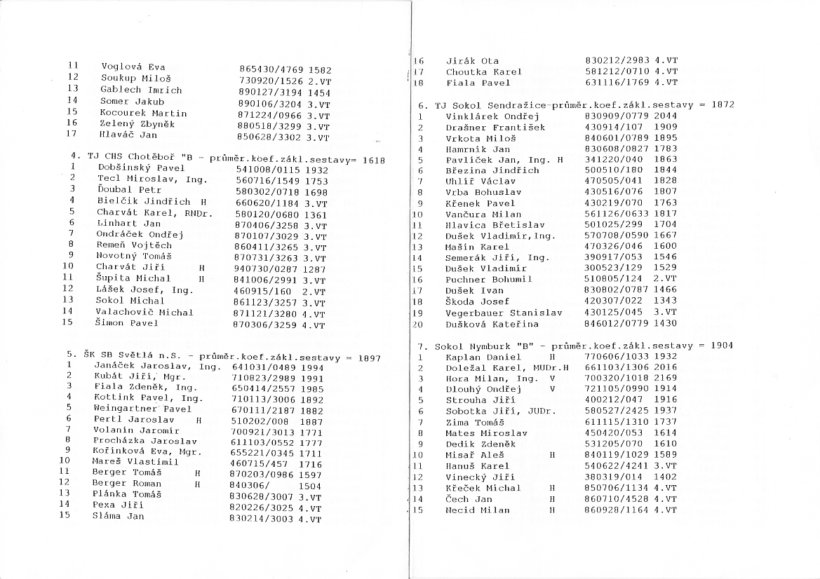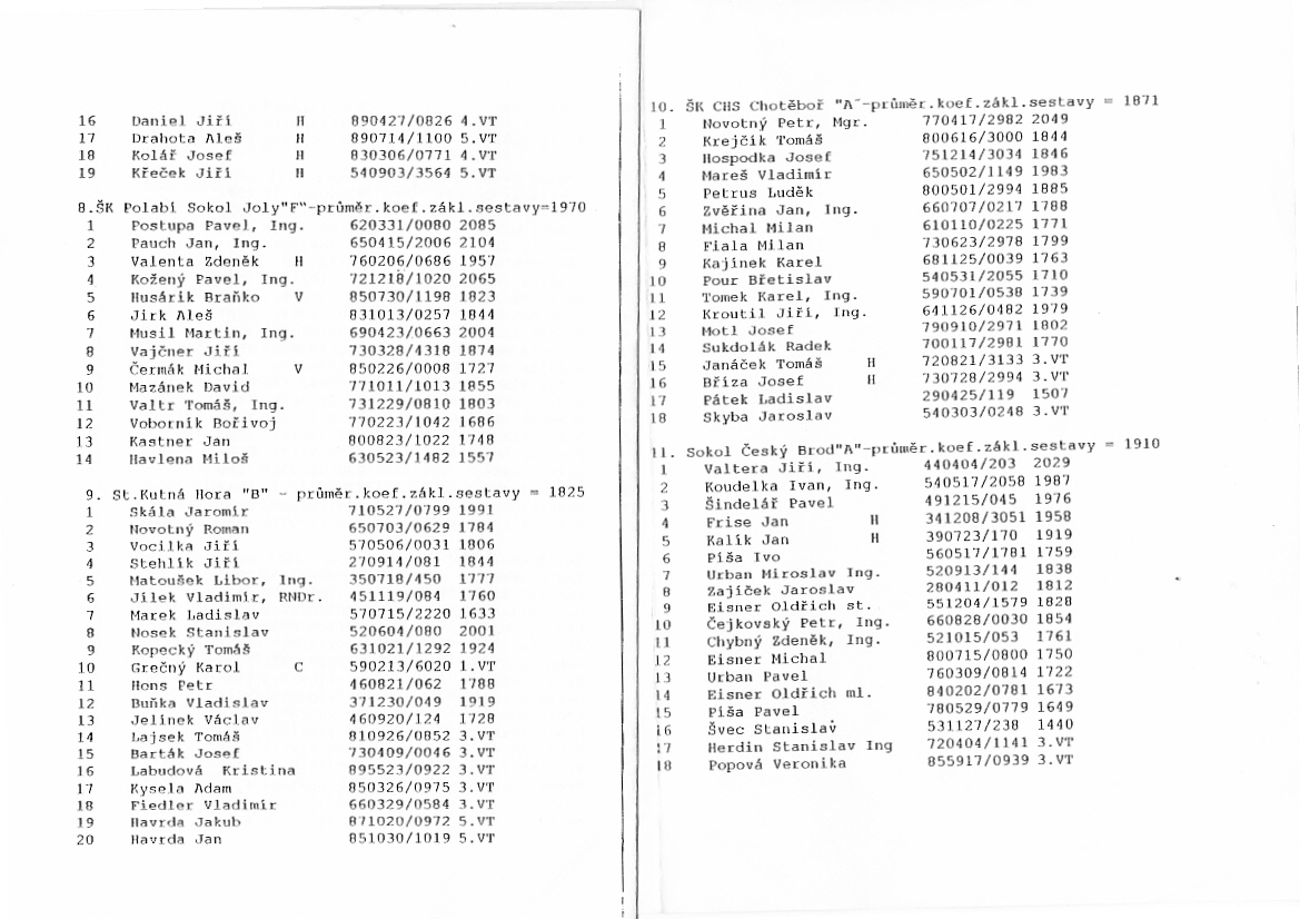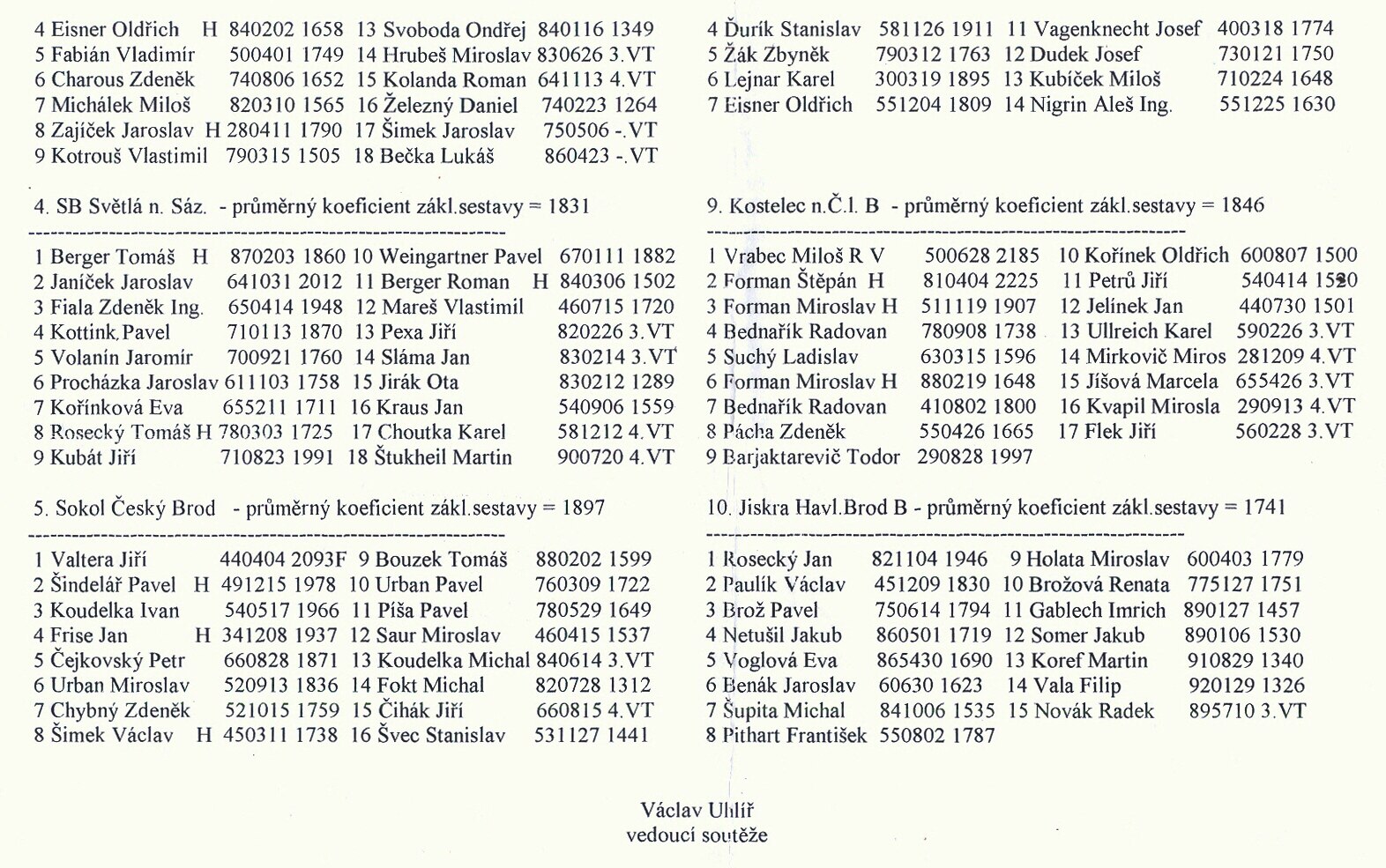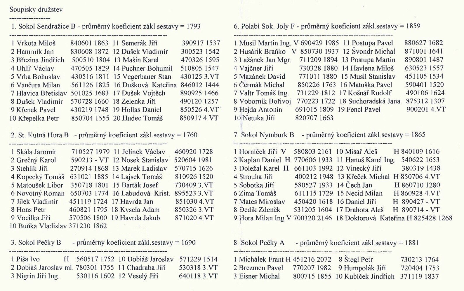 08.05.2001 | Turnaj 8členných družstev | Velim | výsledky | ||||