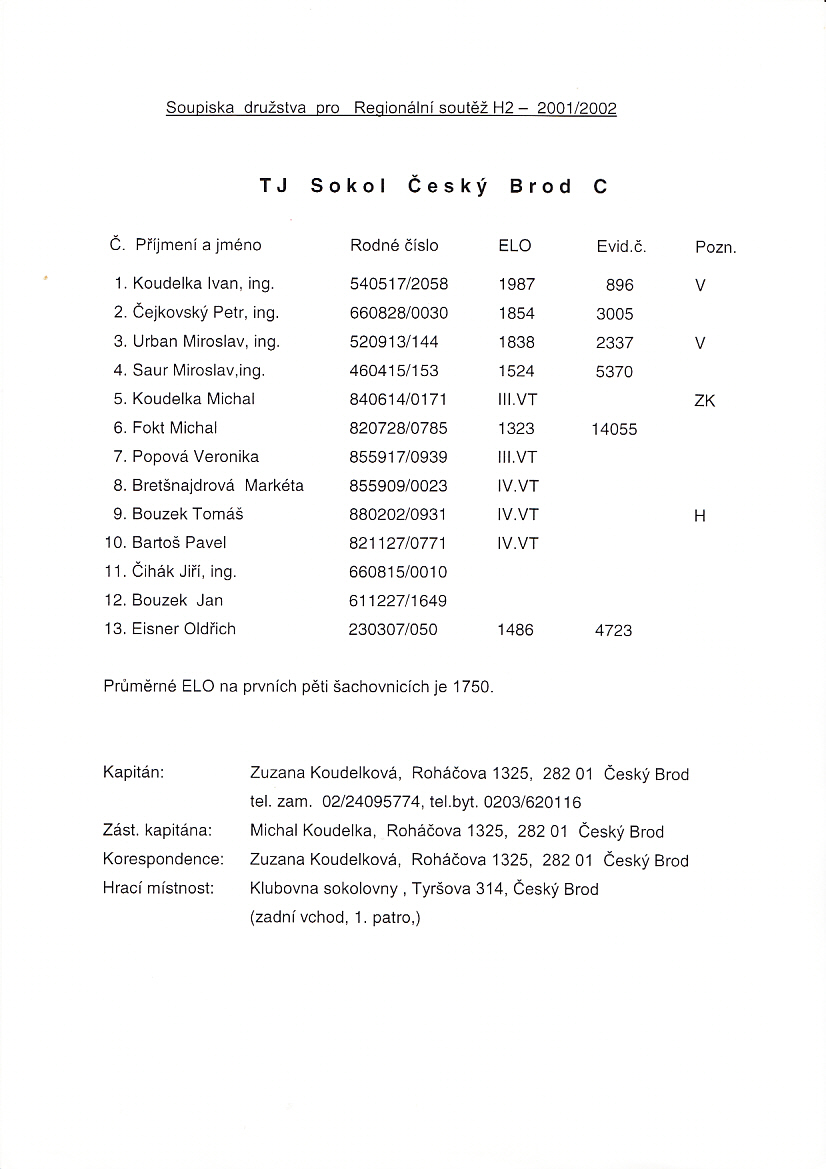 2001/2002 | Regionální soutěž H2 | B, C tým |