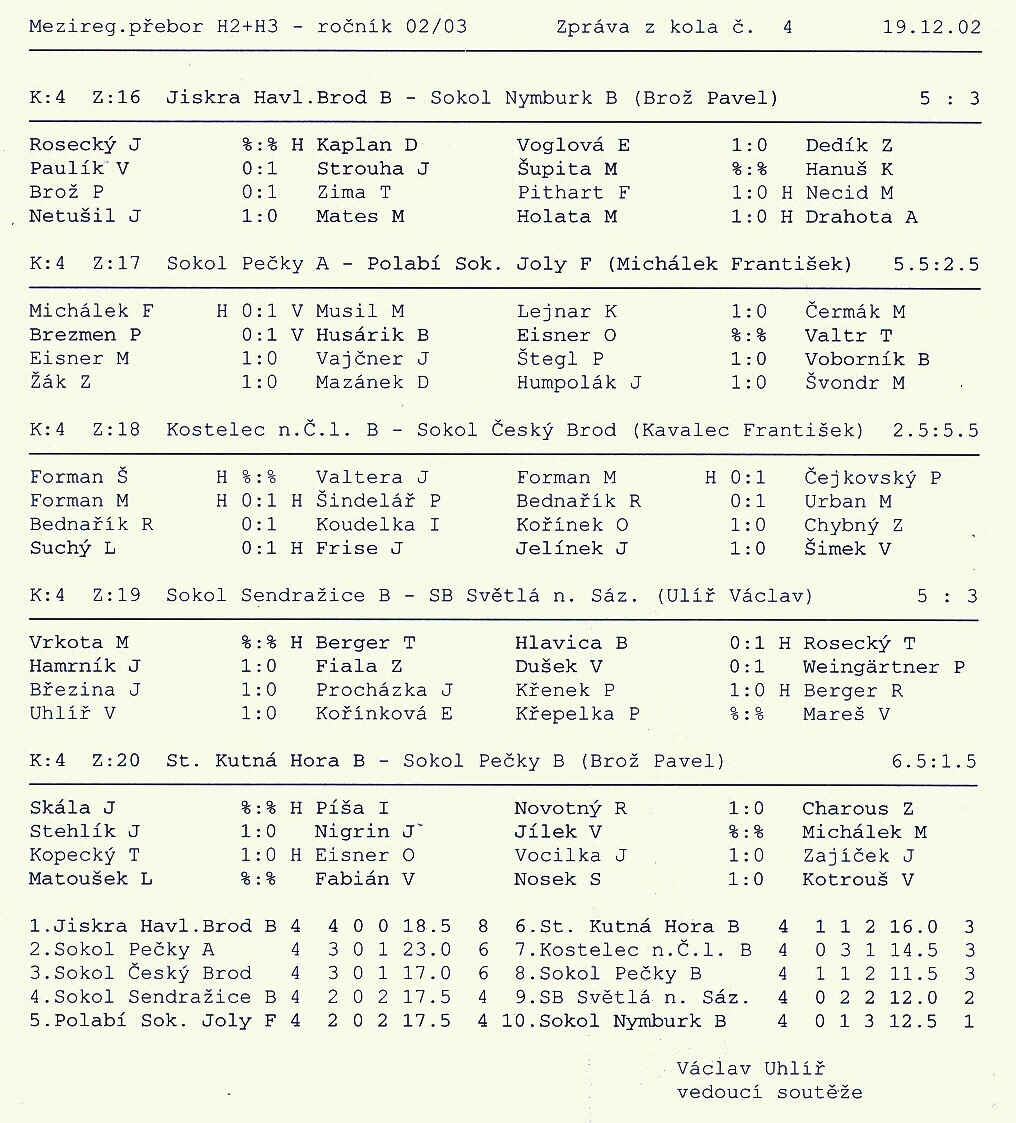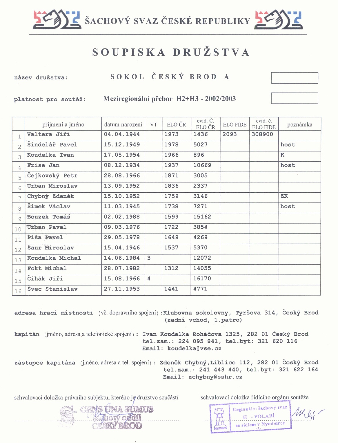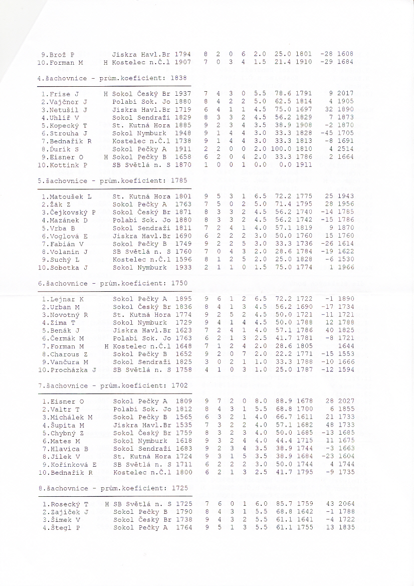 08.05.2003 | Přeboru regionu družstev v rapidu | Velim | 4. z 9 | ||||