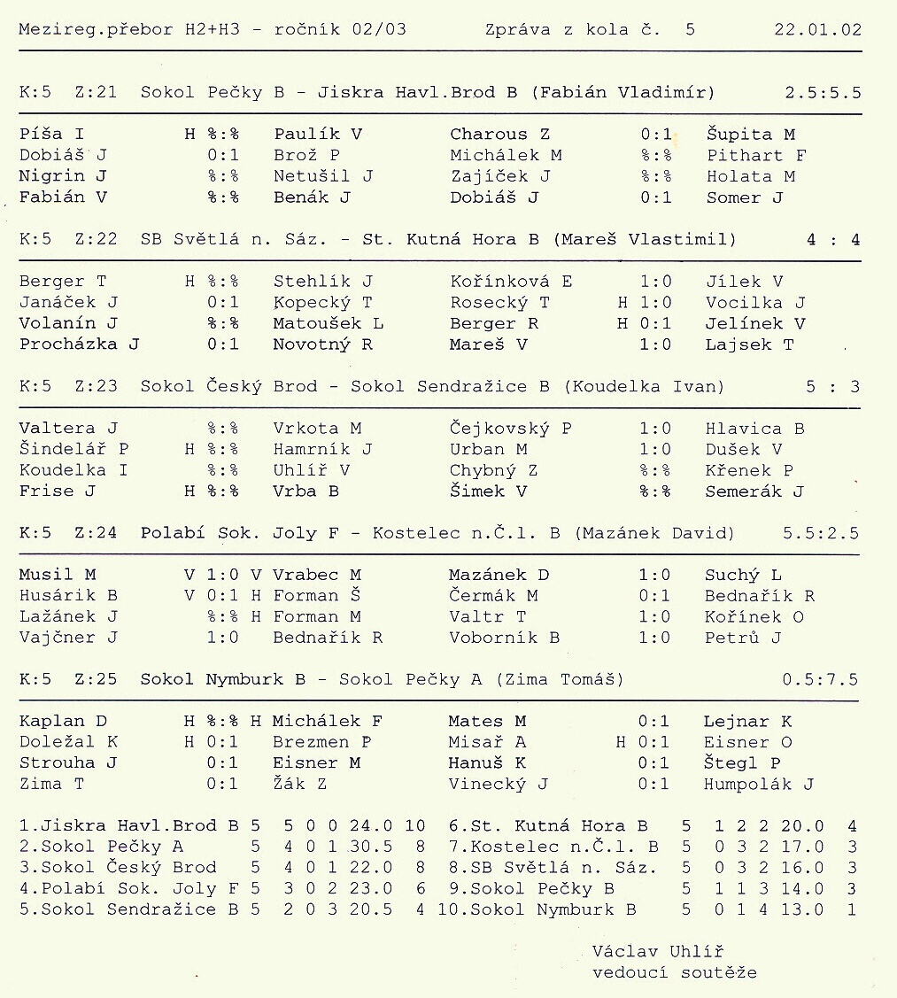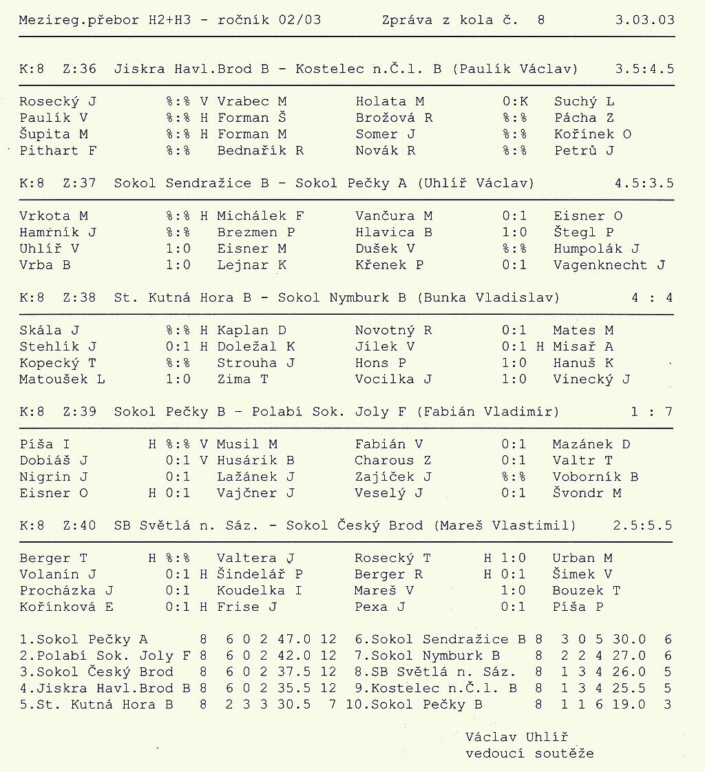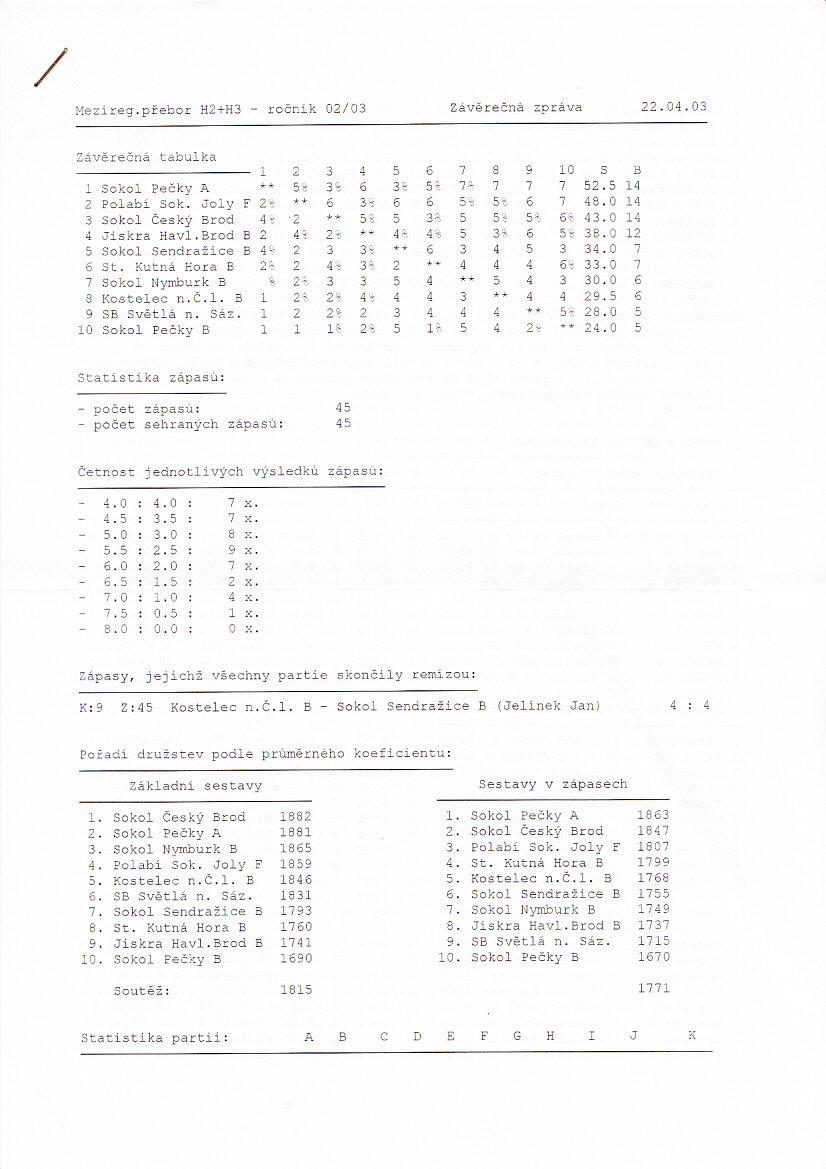 08.05.2003 | Přeboru regionu družstev v rapidu | Velim | 4. z 9 | ||||