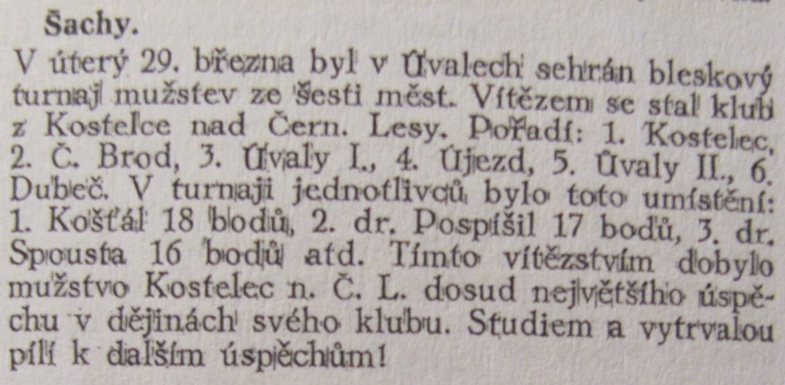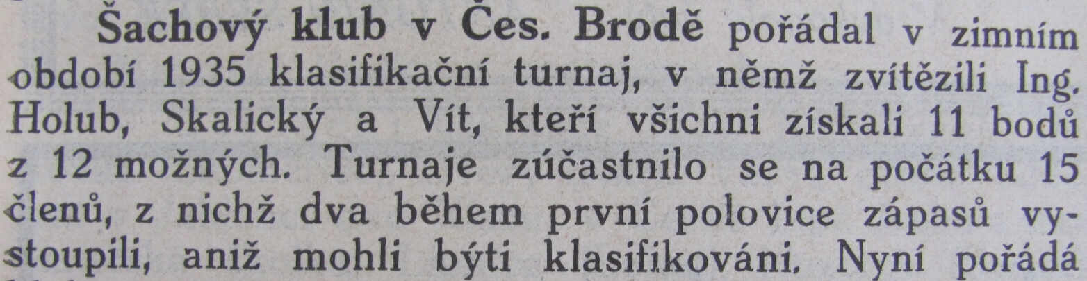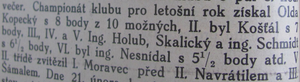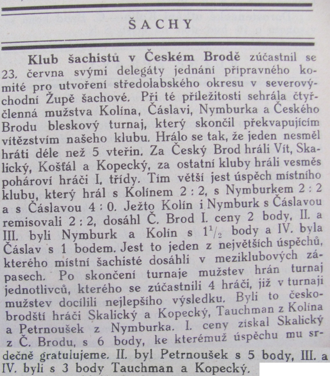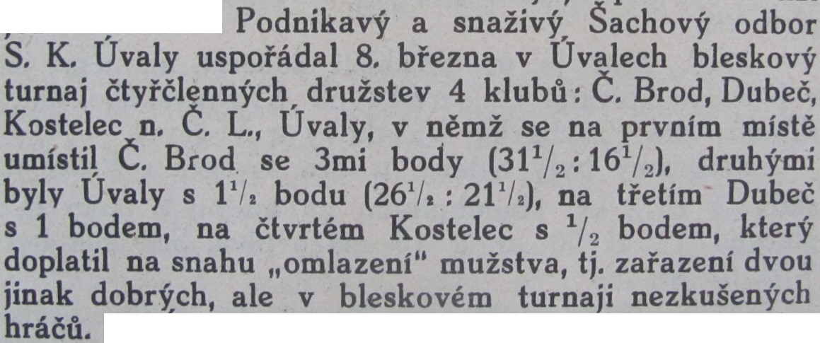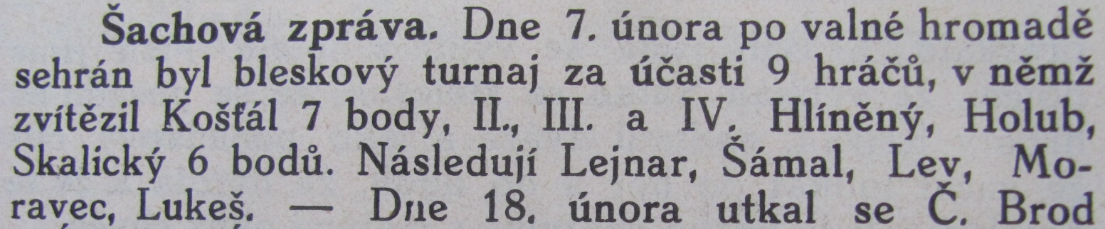 07.02.1936 | Klubový bleskový turnaj | Český Brod | výsledky | ||||