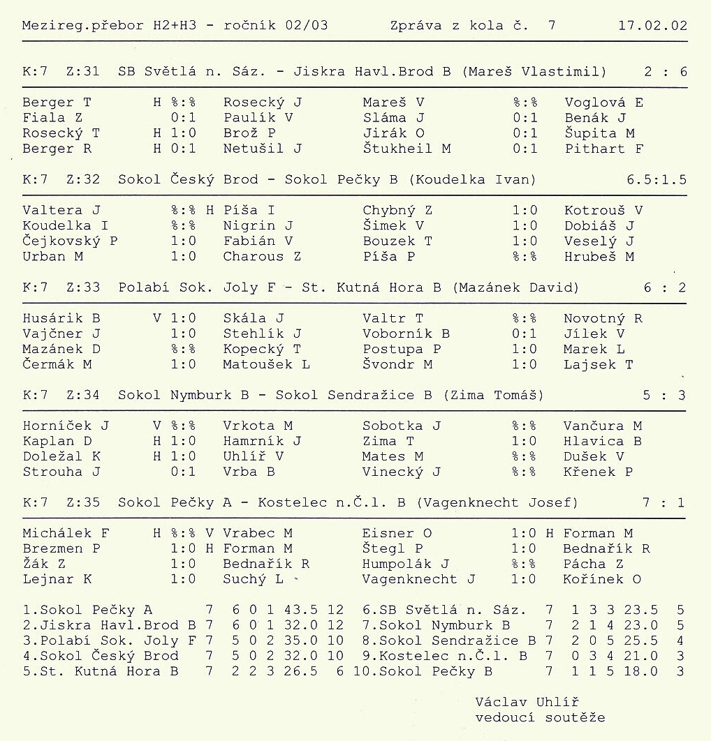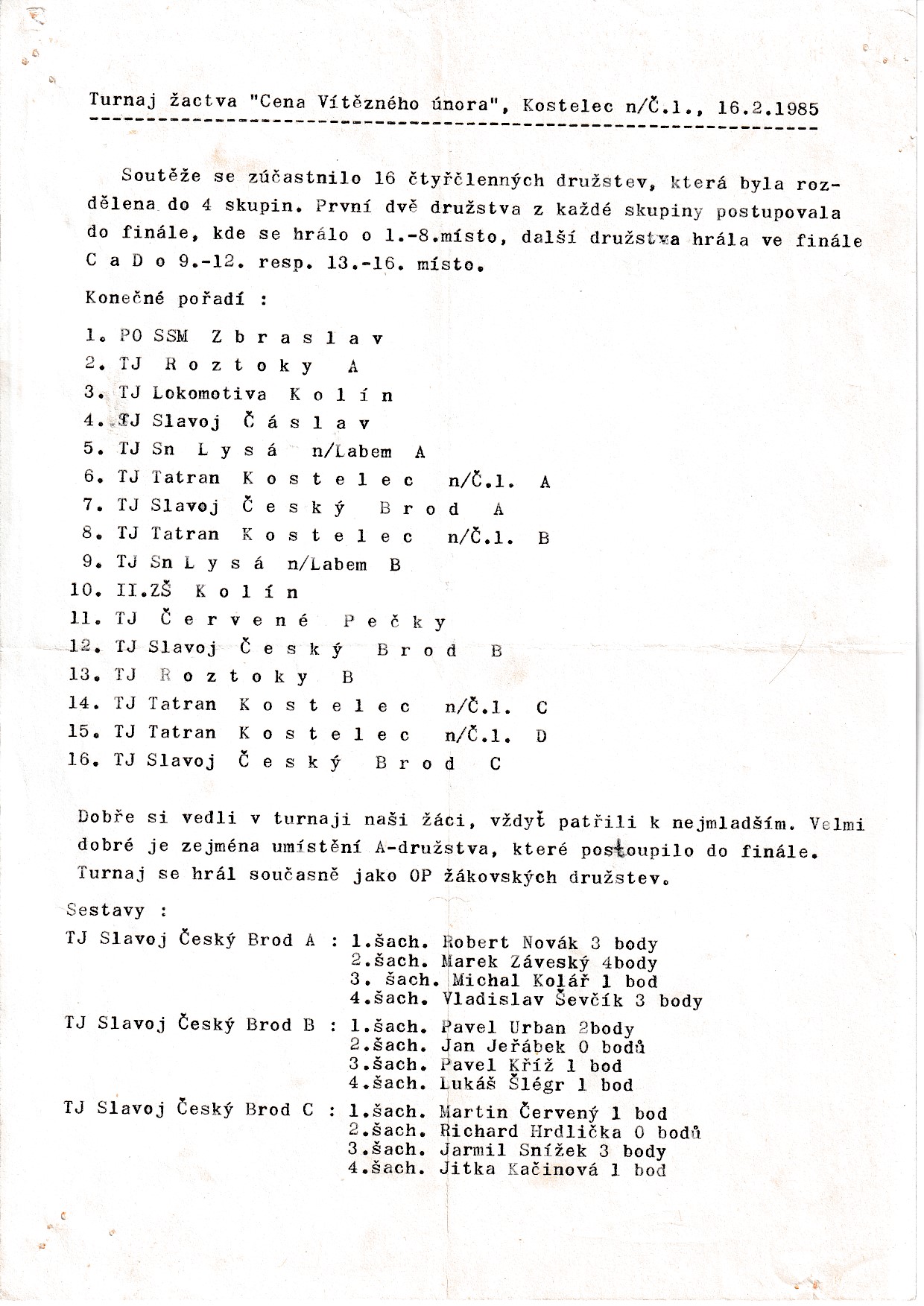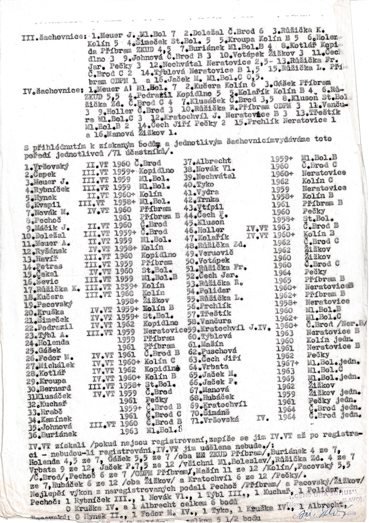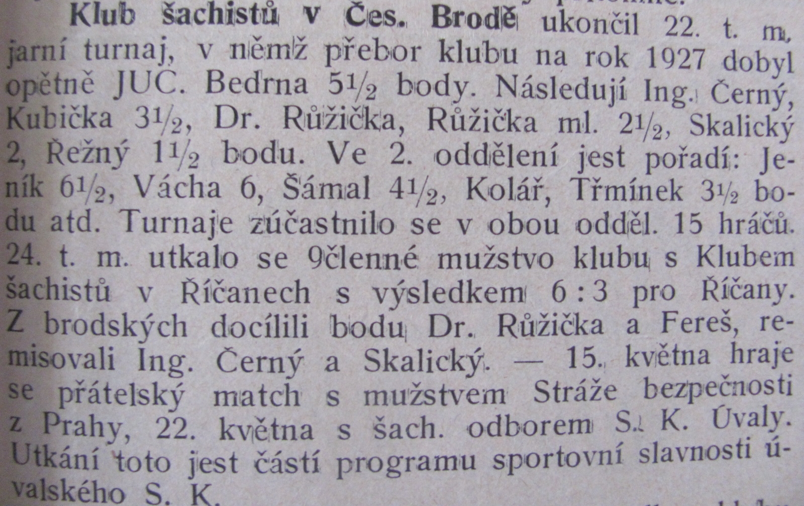 07.02.1936 | Klubový bleskový turnaj | Český Brod | výsledky | ||||