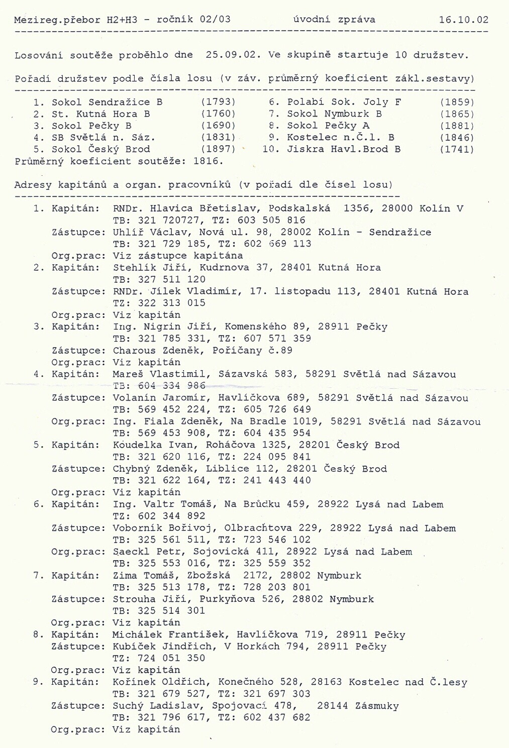 2002/2003 | Meziregionální přebor H2+H3 | A tým |