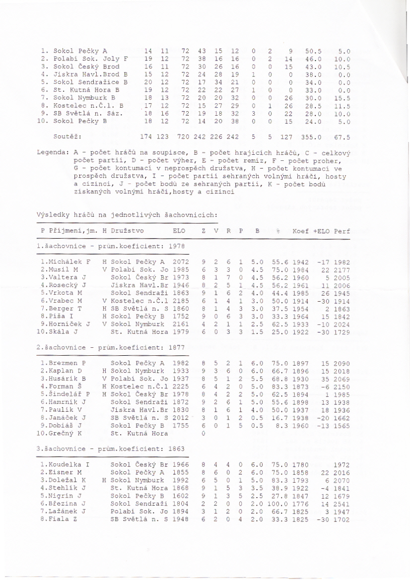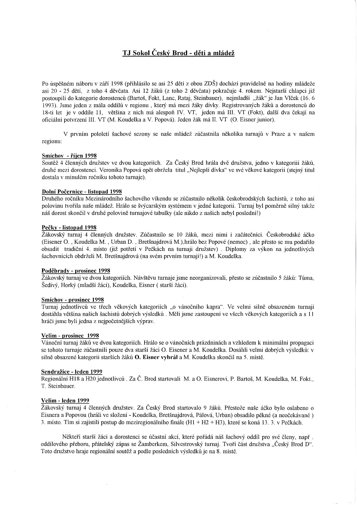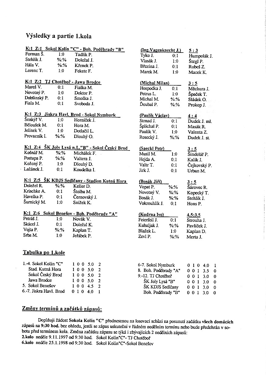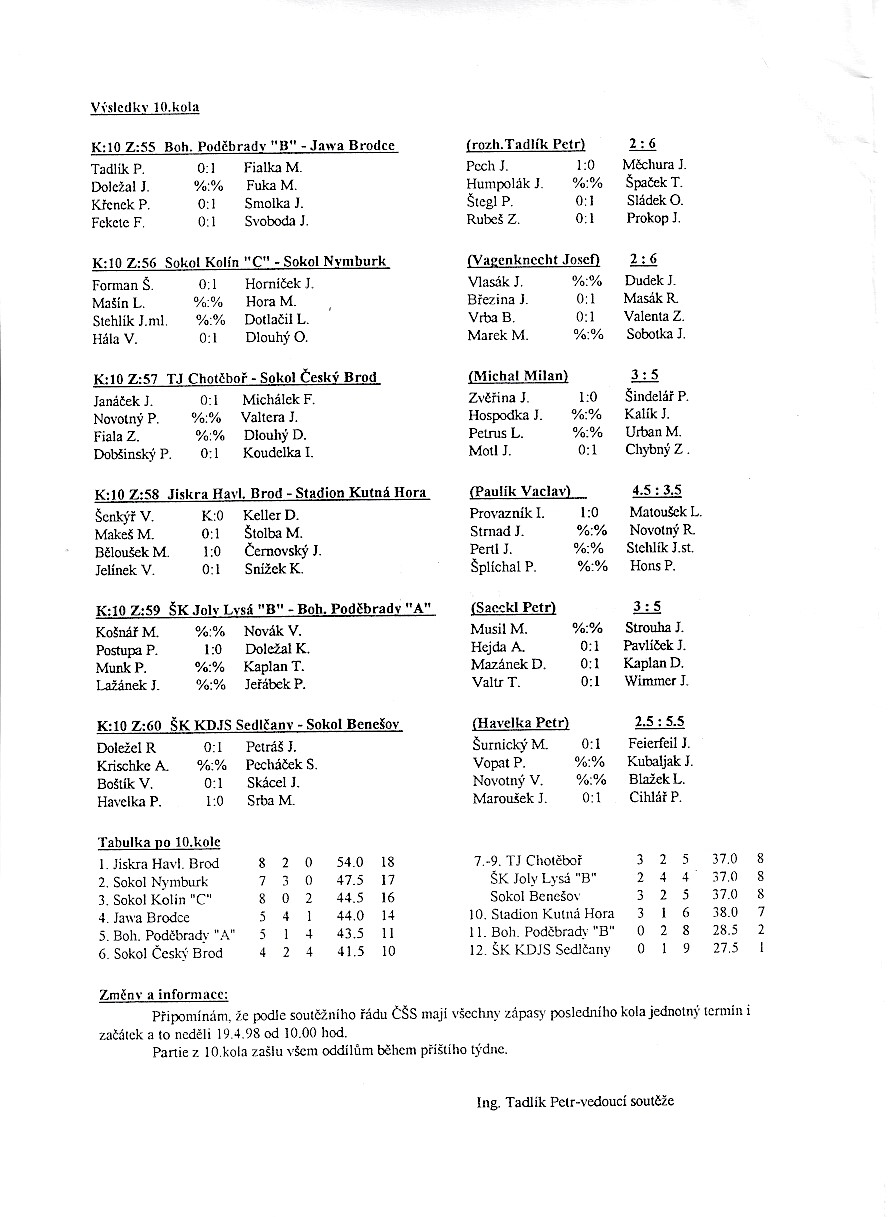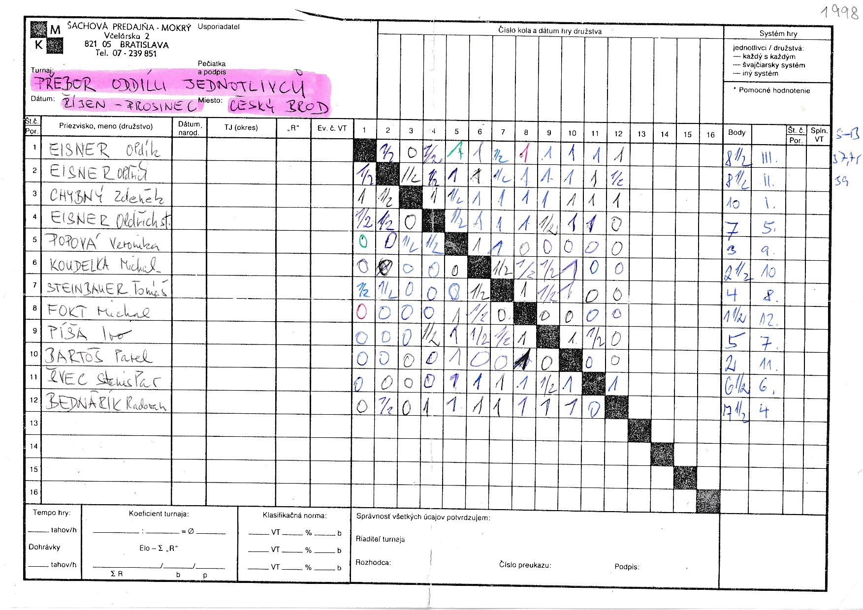 X – XII 1998 | Přebor oddílu | Český Brod | výsledky sm | ||||