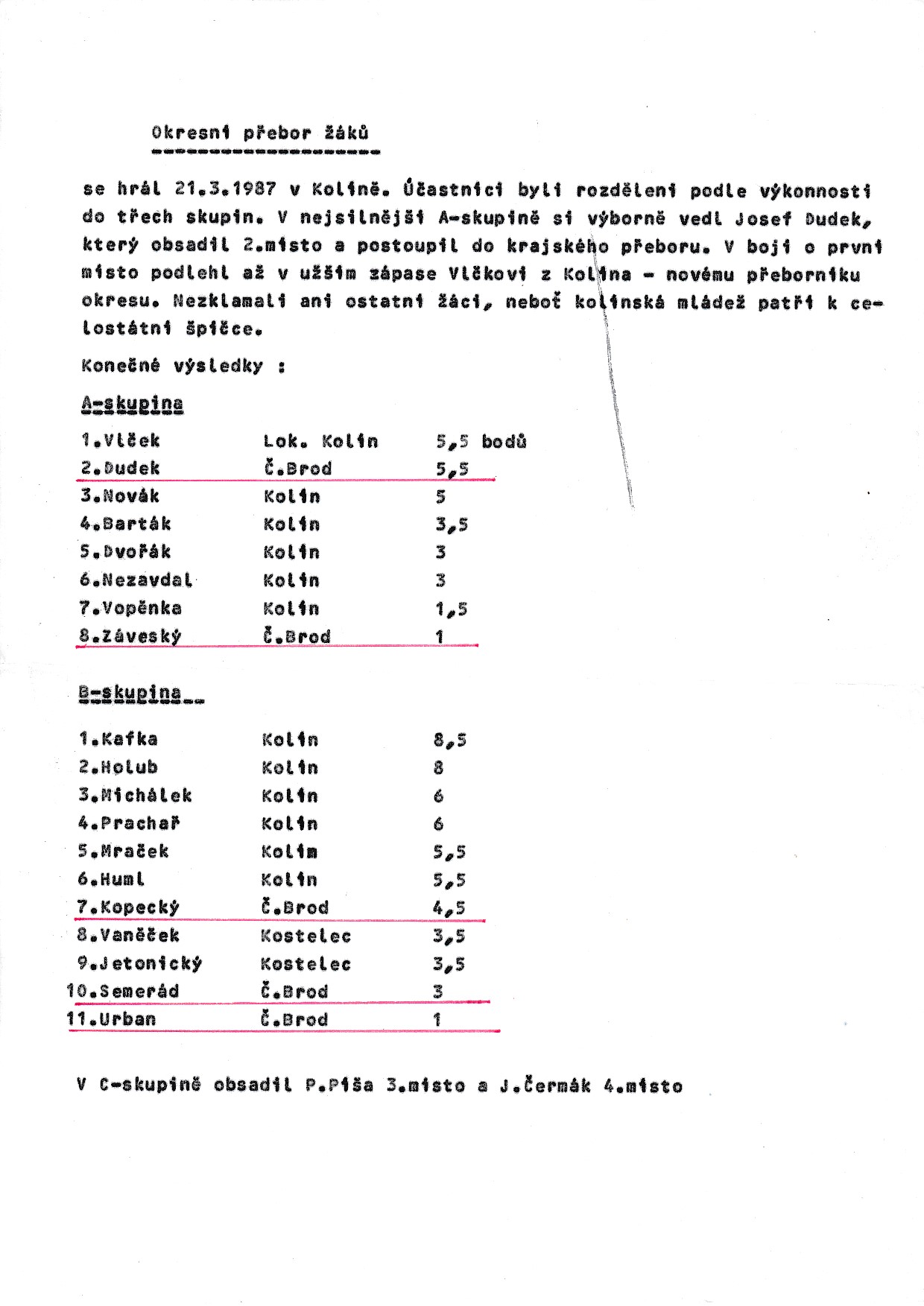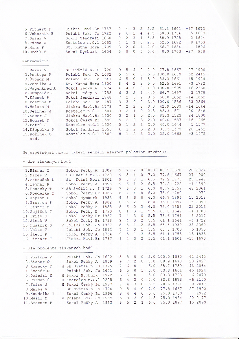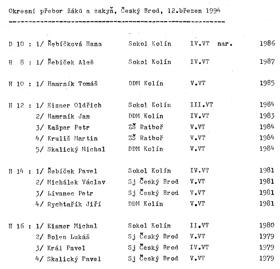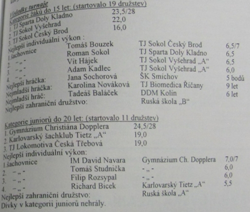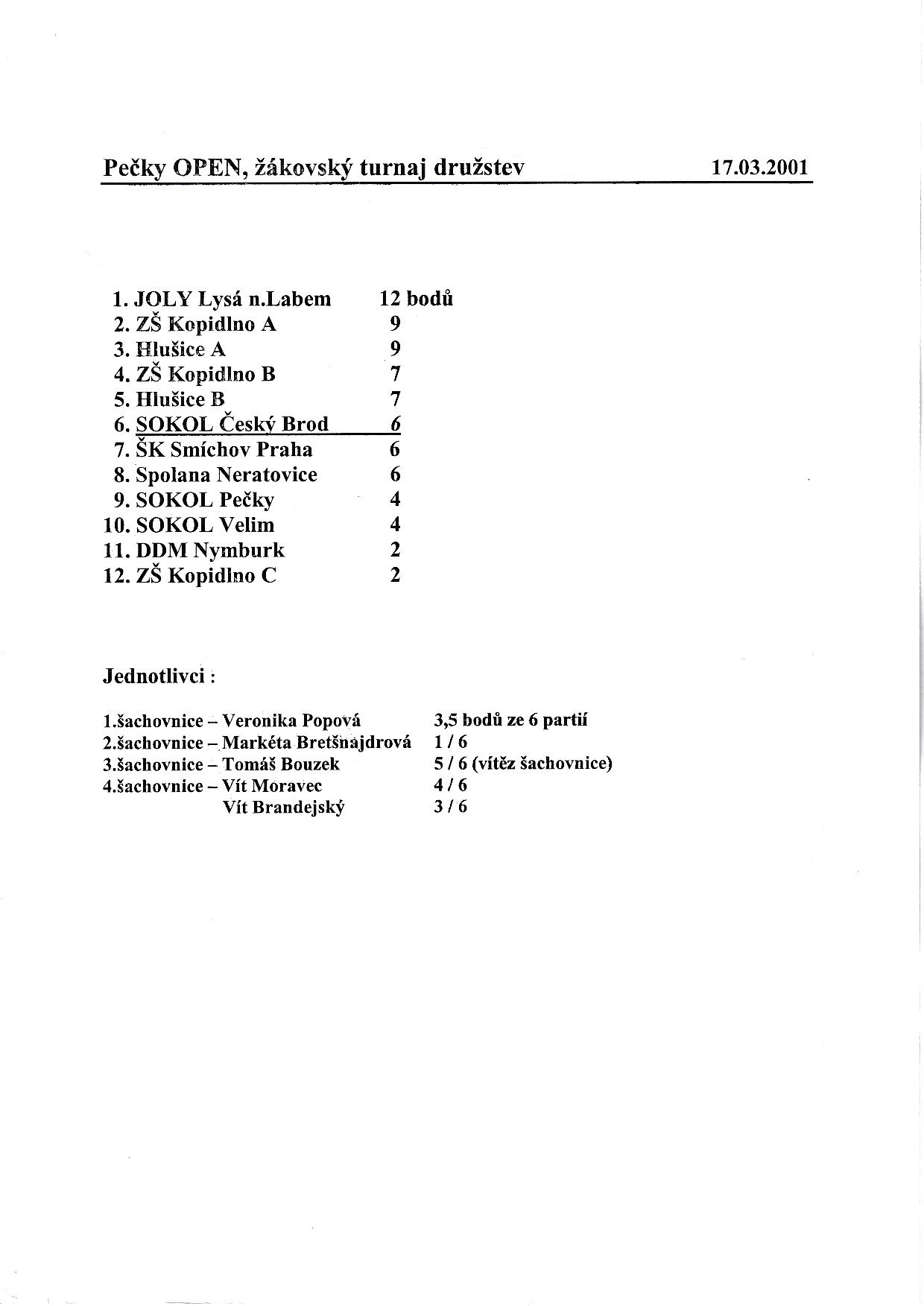17.03.2001 | Pečky open, žák. turnaj družstev | Pečky | výsledky | ||||