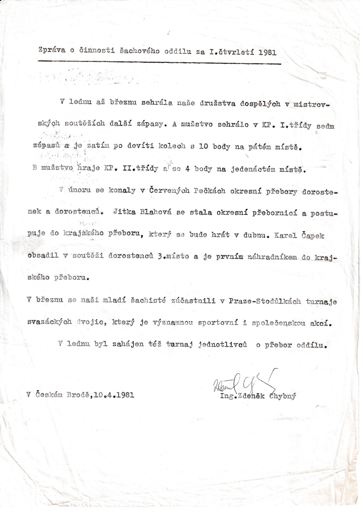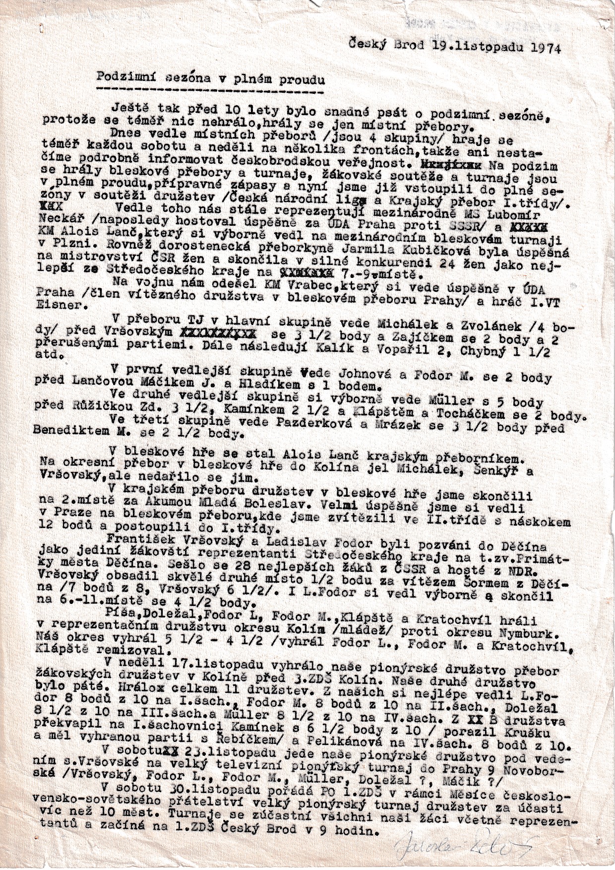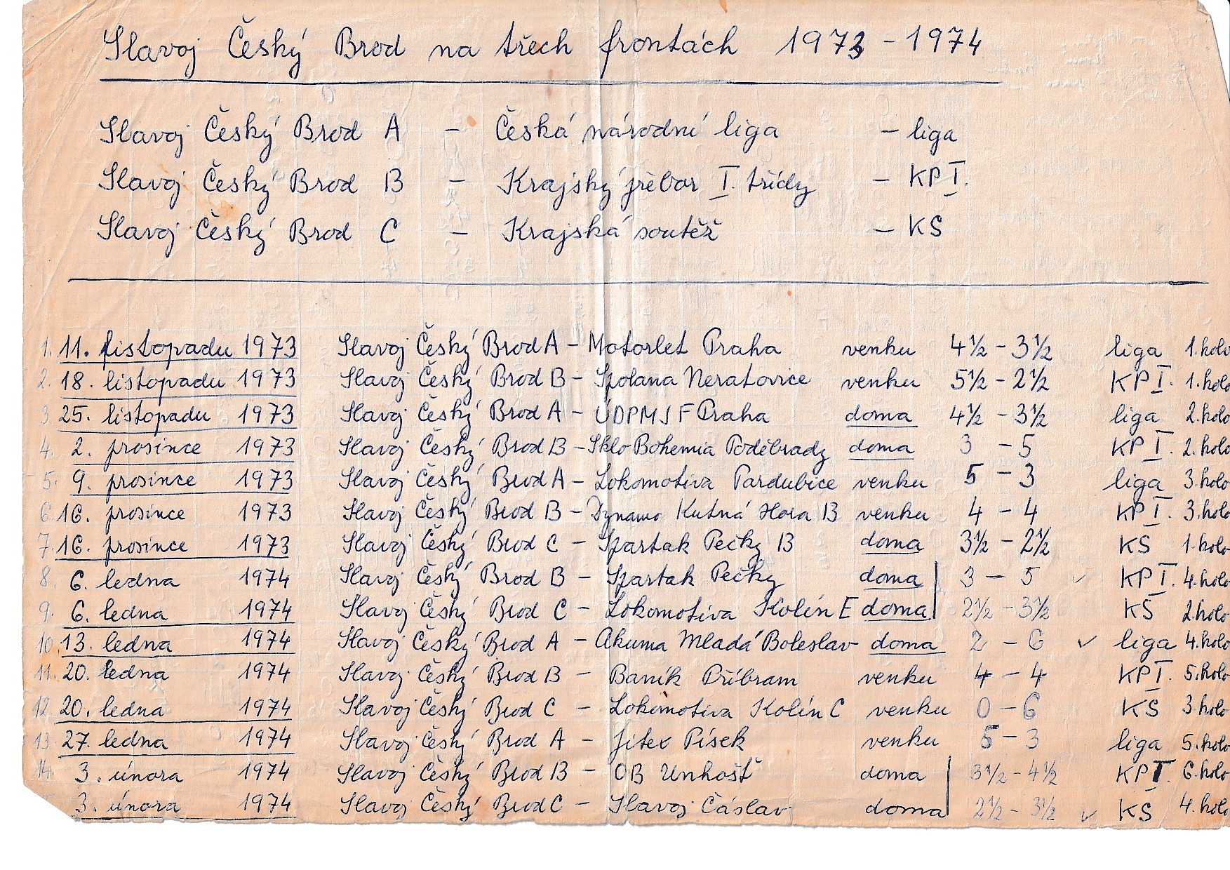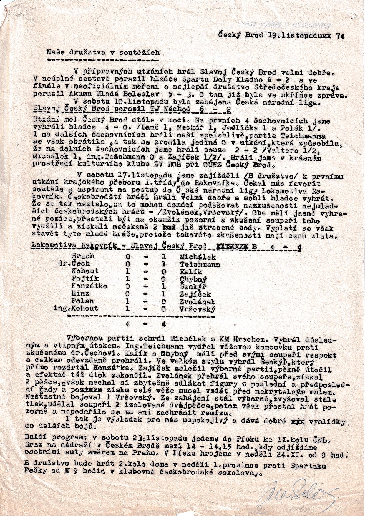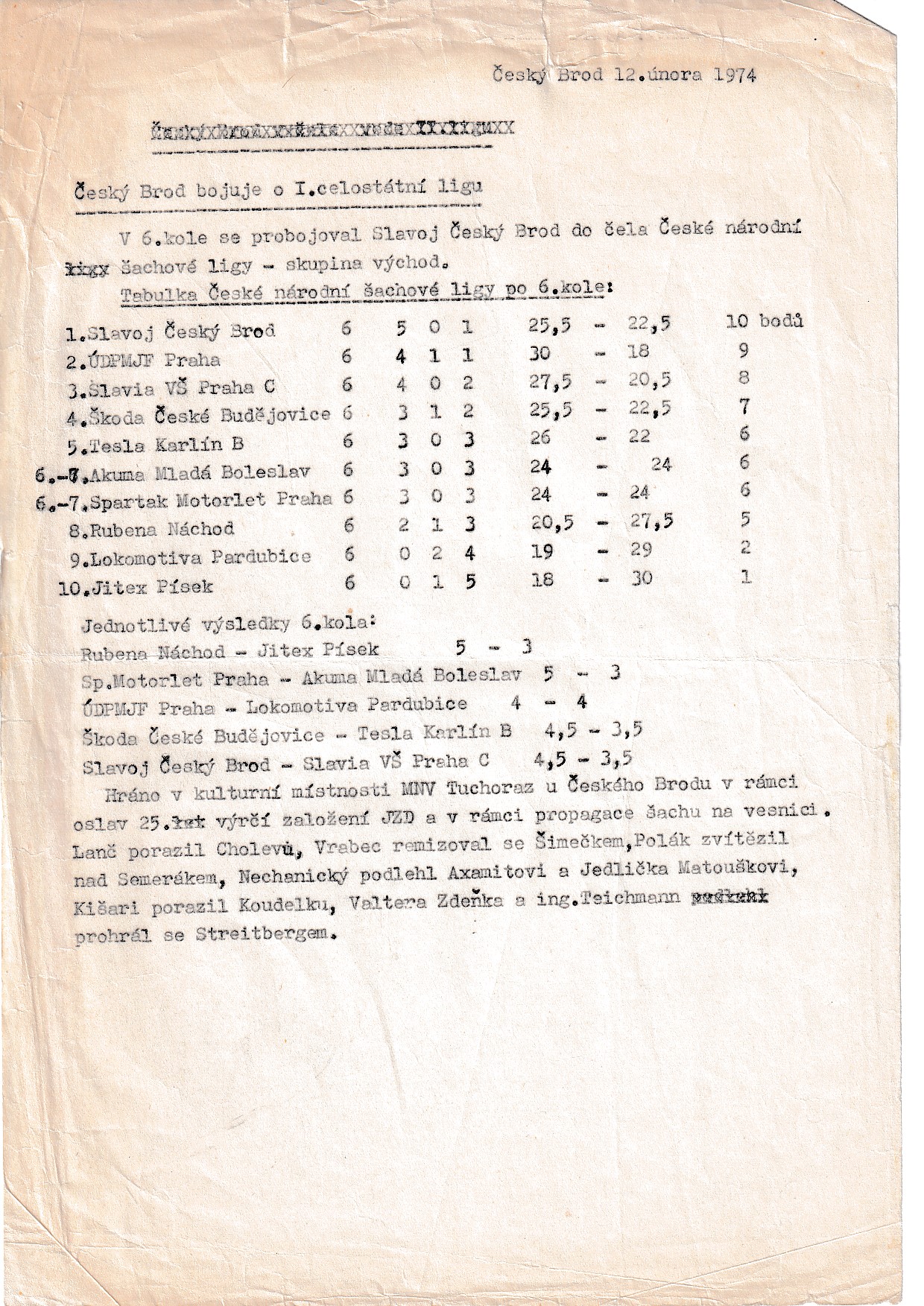 03.11.1929 | Simultánka s mistrem Haškem | Český Brod? | +10 -2 =2 | ||||