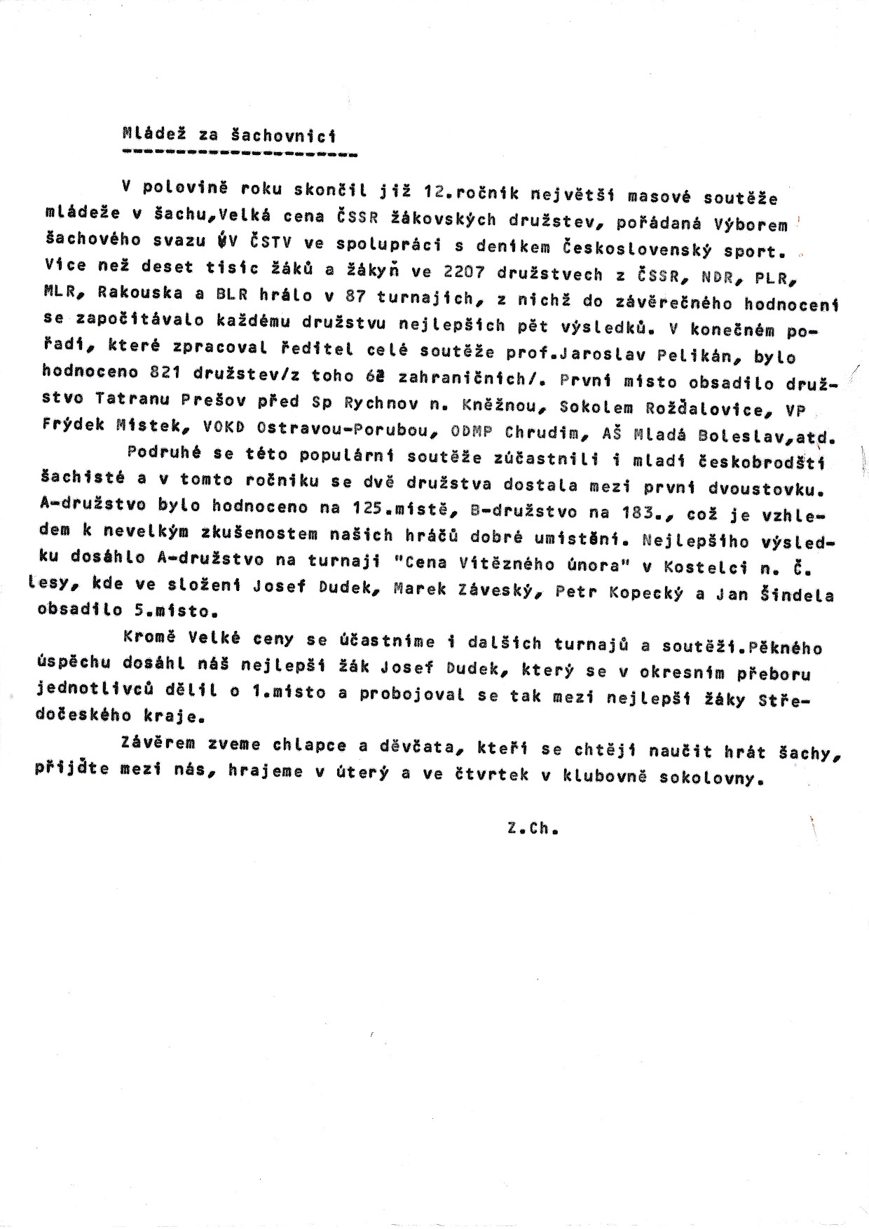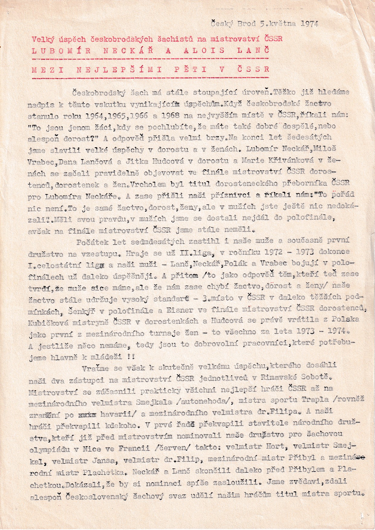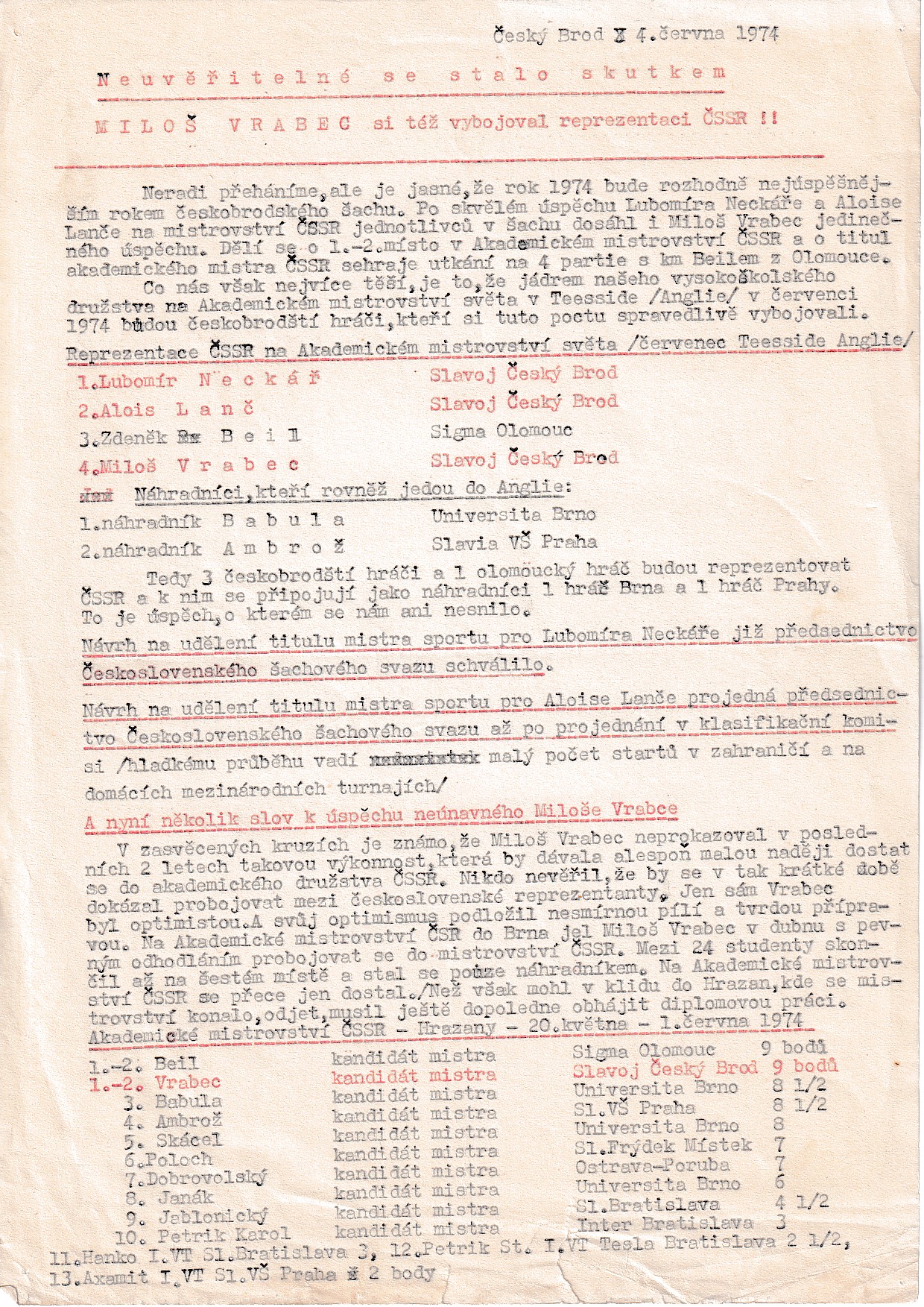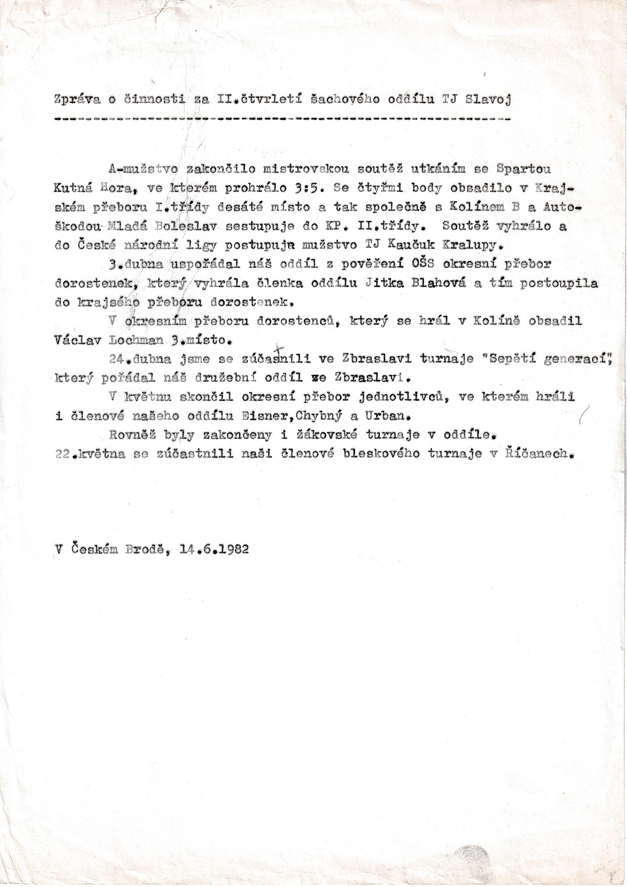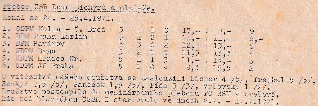 03.11.1929 | Simultánka s mistrem Haškem | Český Brod? | +10 -2 =2 | ||||