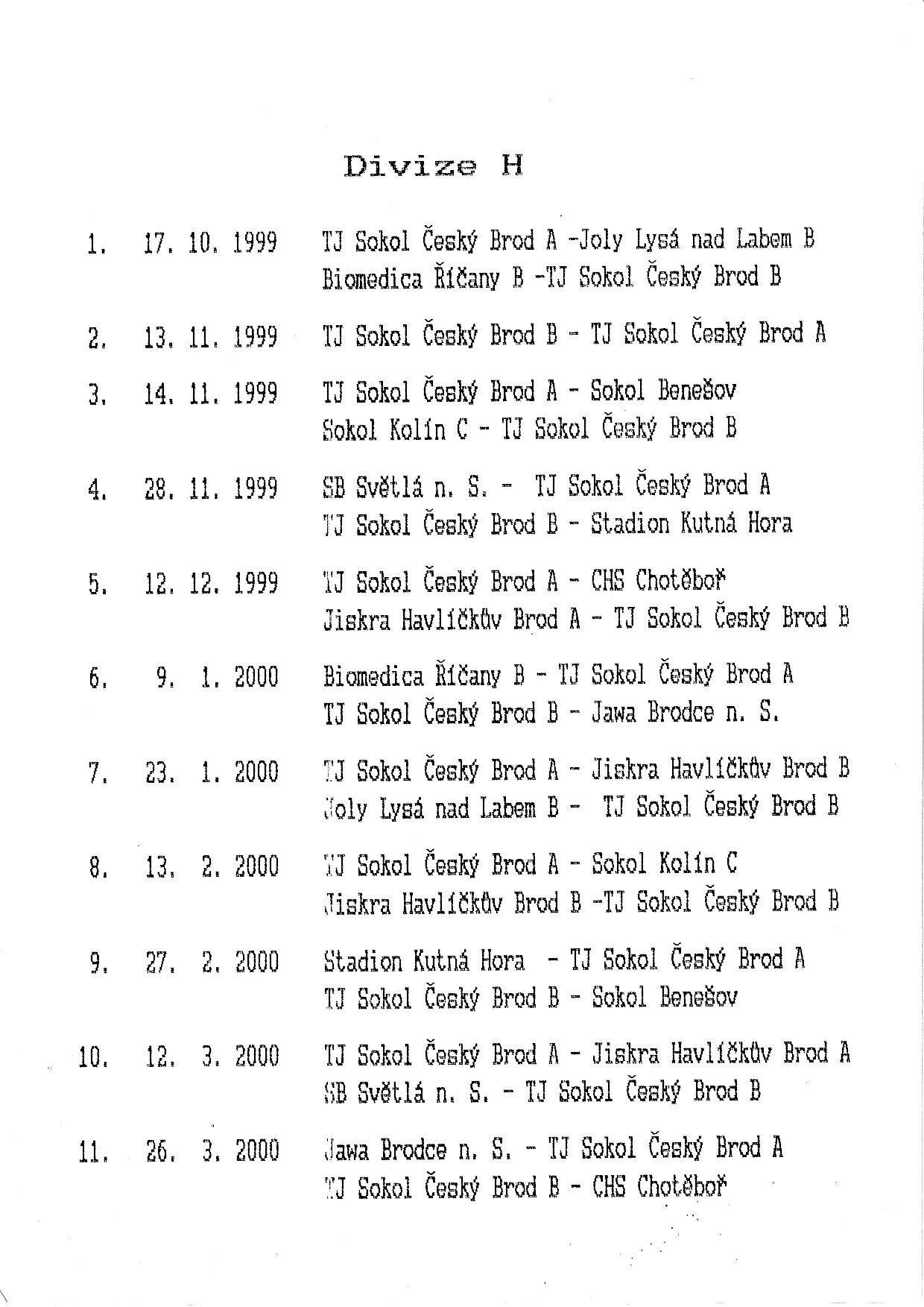 IX – XII 1999 | Přebor oddílu | Český Brod | výsledky sm | ||||