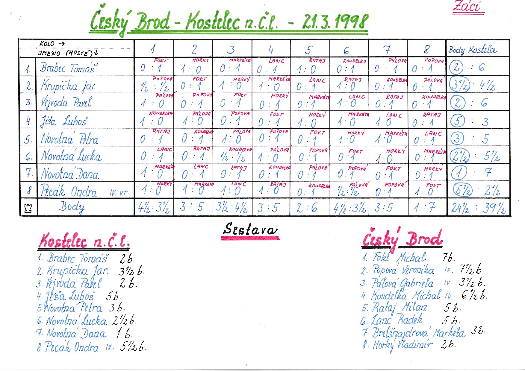 21.03.1998 | Zápas Český Brod x Kostelec n. Č. l. | Český Brod | výsledky | ||||