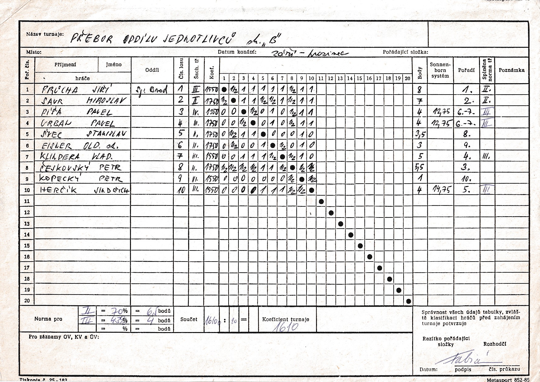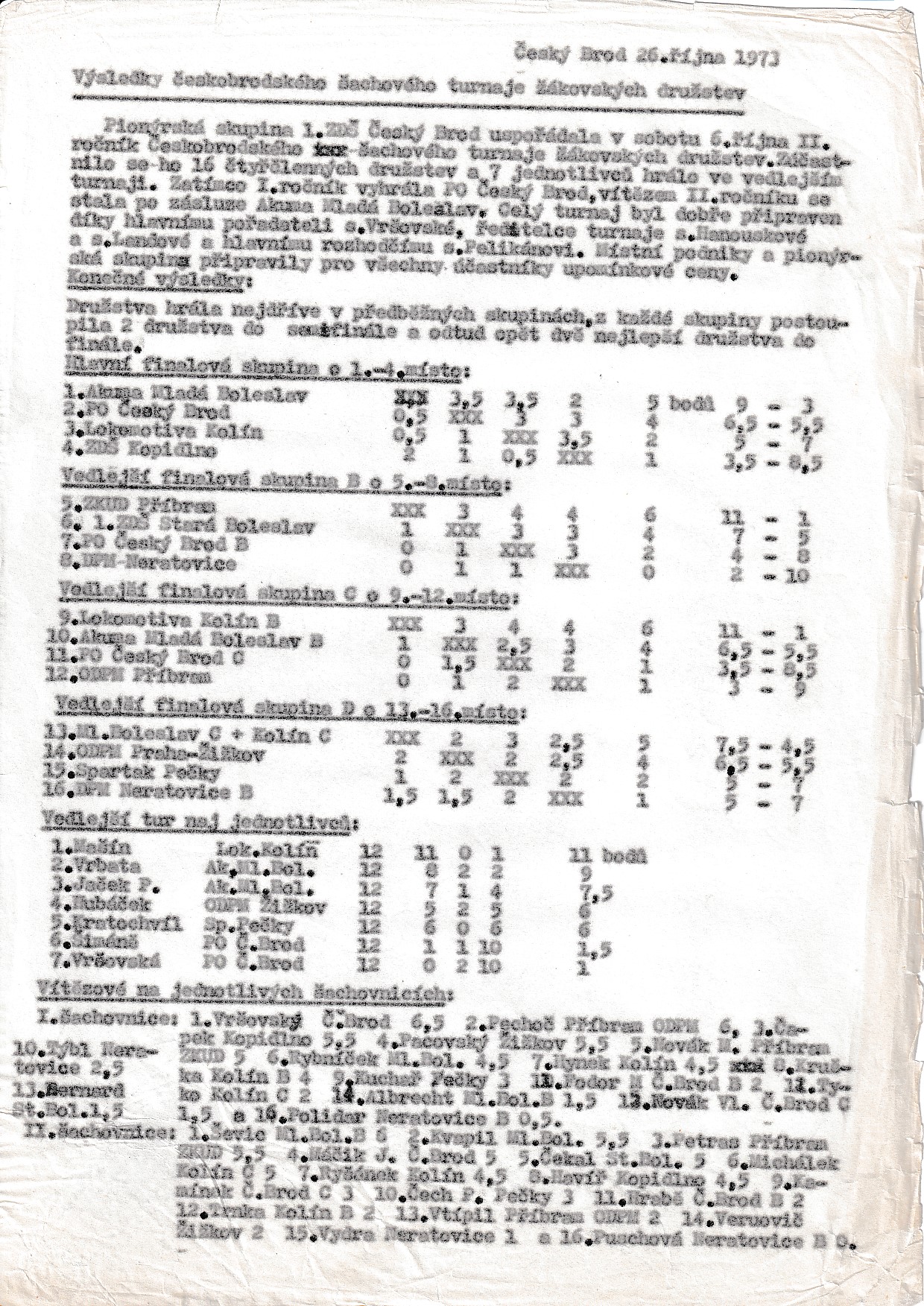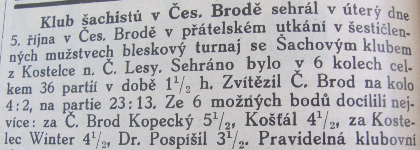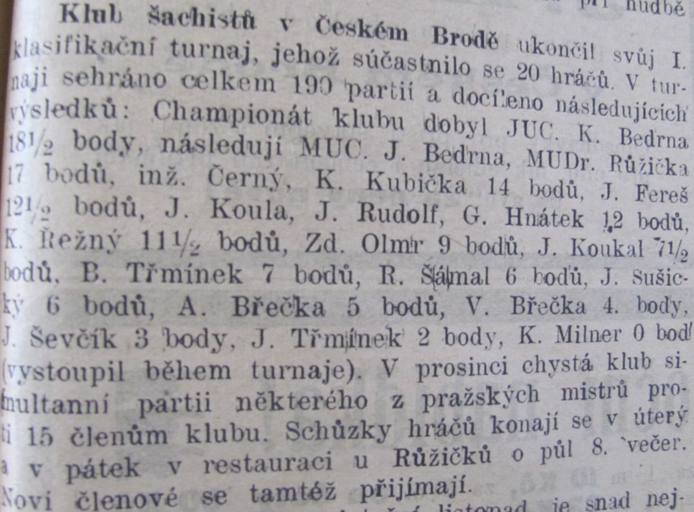 13.10.1935 | Klubový bleskový turnaj | Český Brod | výsledky | ||||
