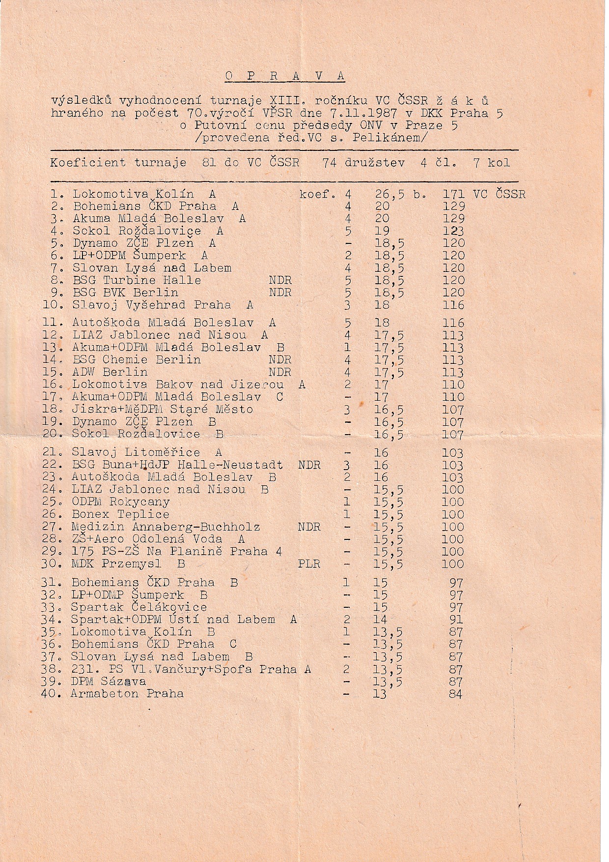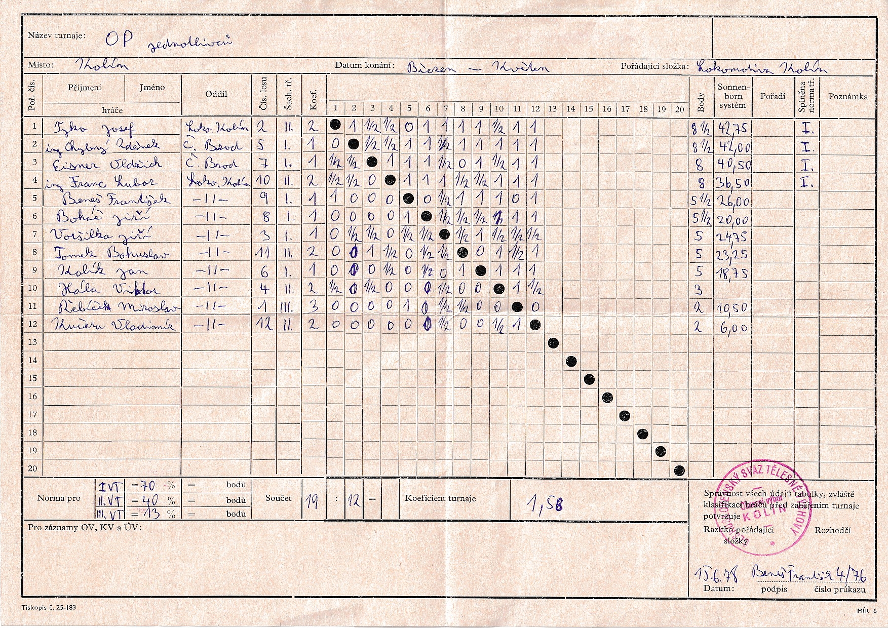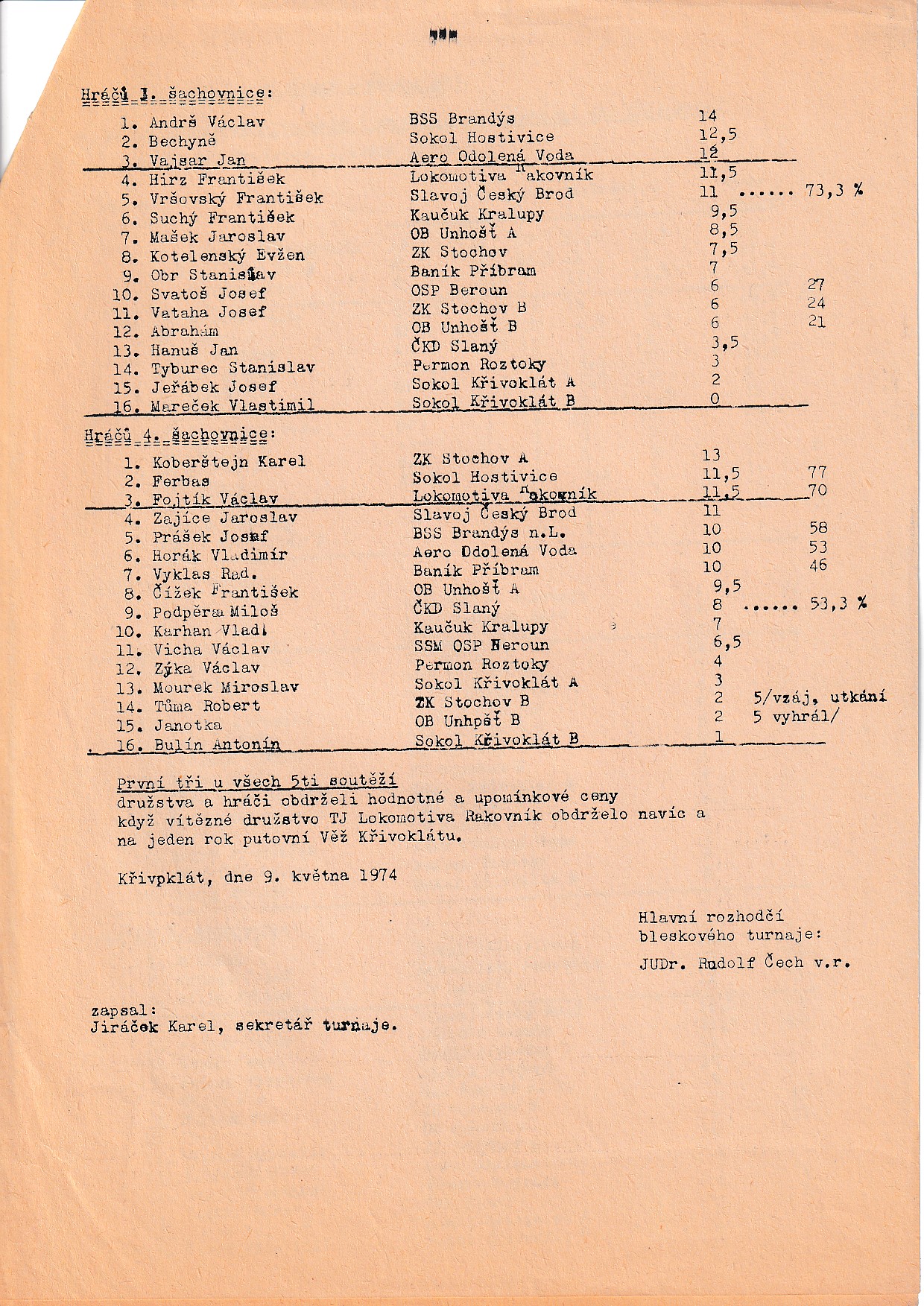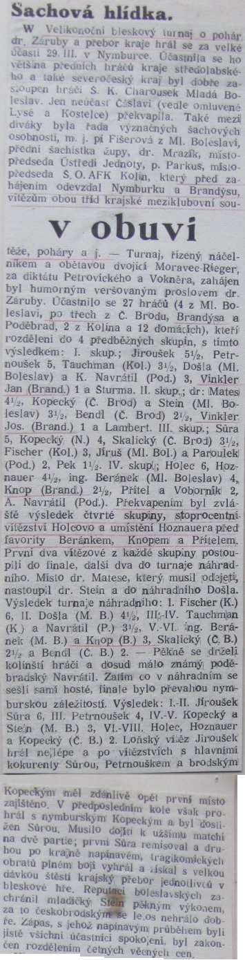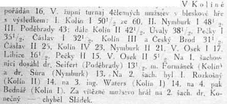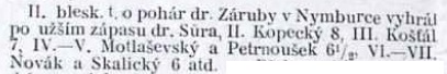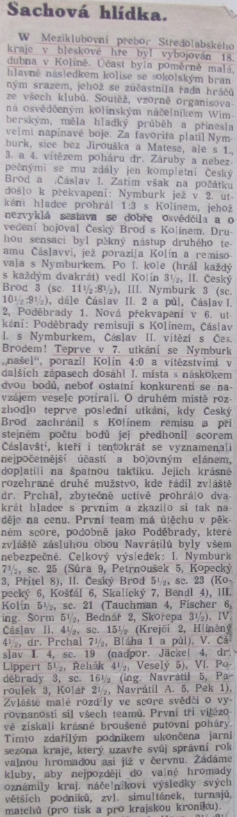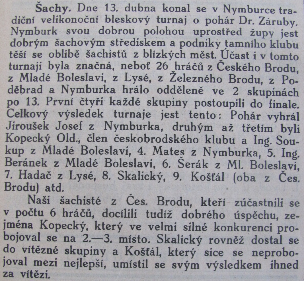 13.04.1936 | Bleskový turnaj o pohár Dr. Záruby | Nymburk | výsledky | ||||