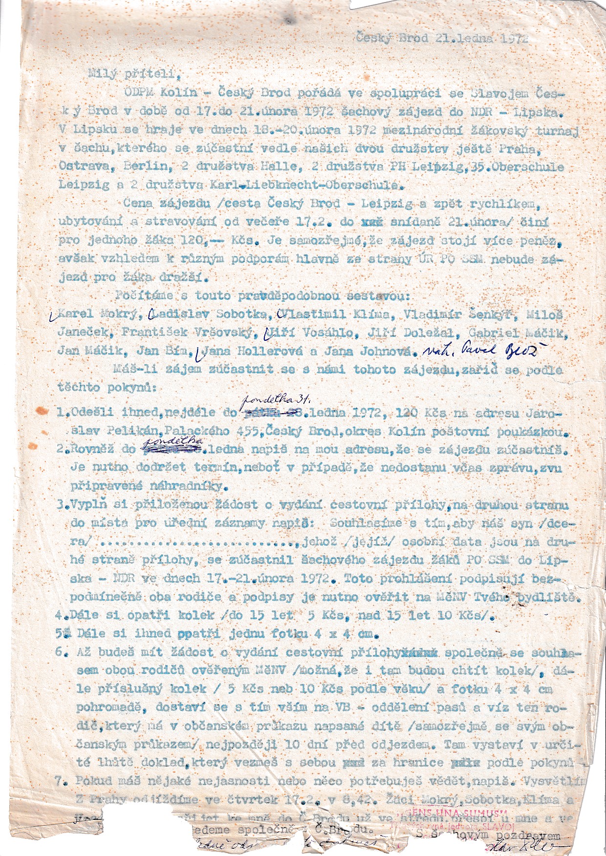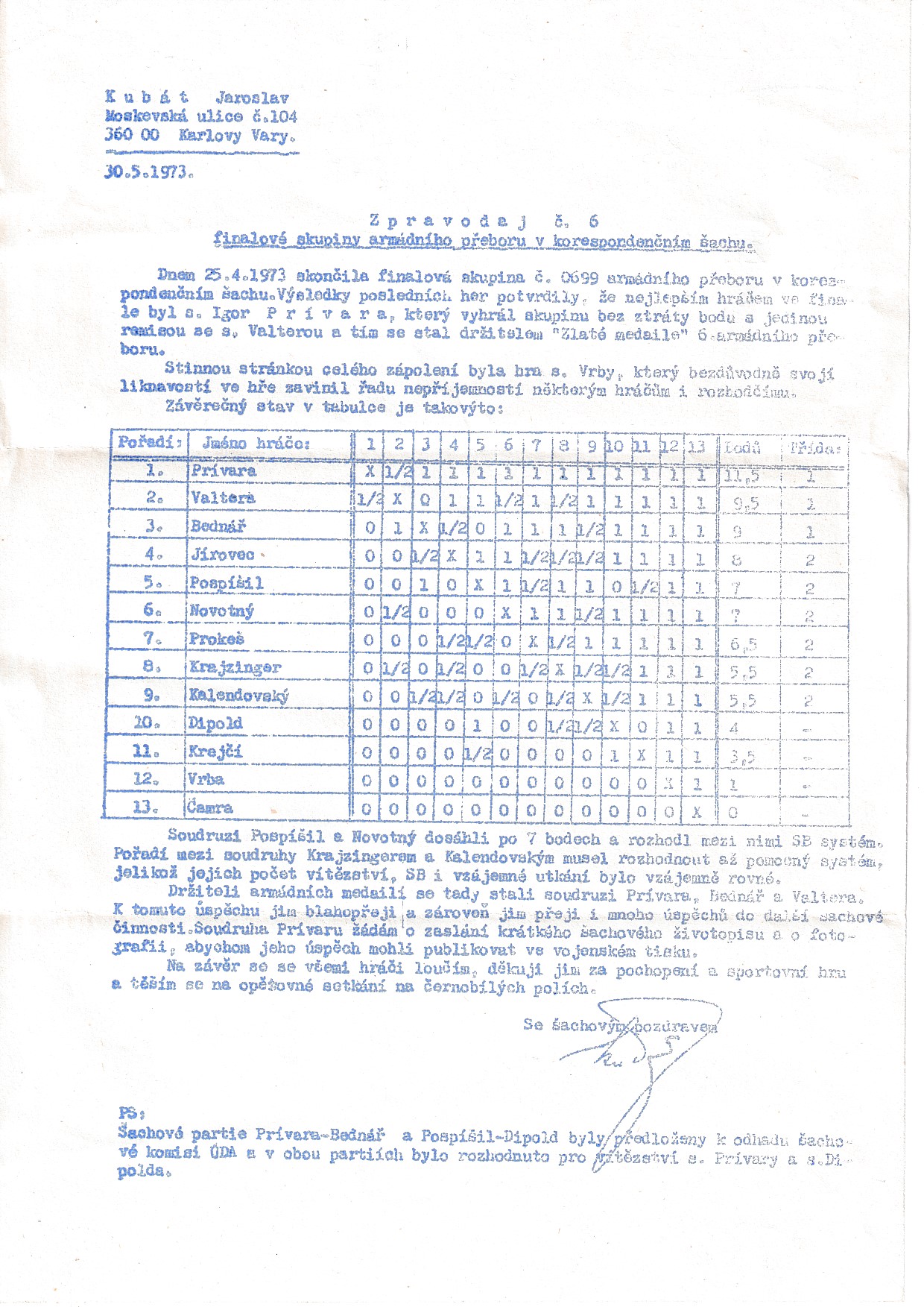 21.04.1931 | Simultánka s p. Klecandou | Český Brod? | +6 -2 =3 | ||||