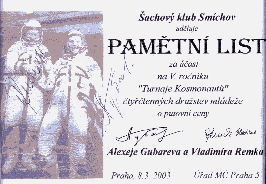 08.03.2003 | Turnaj kosmonautů | Praha Smíchov | výsledky | p. l. | |||