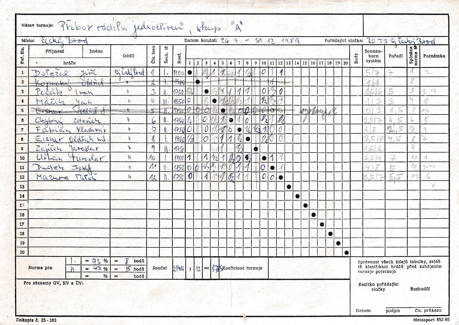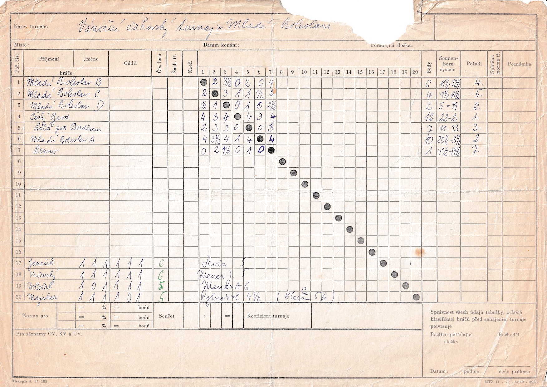 26.12.1935 | Župní bleskový turnaj jednotlivců | Nymburk | výsledky | ||||