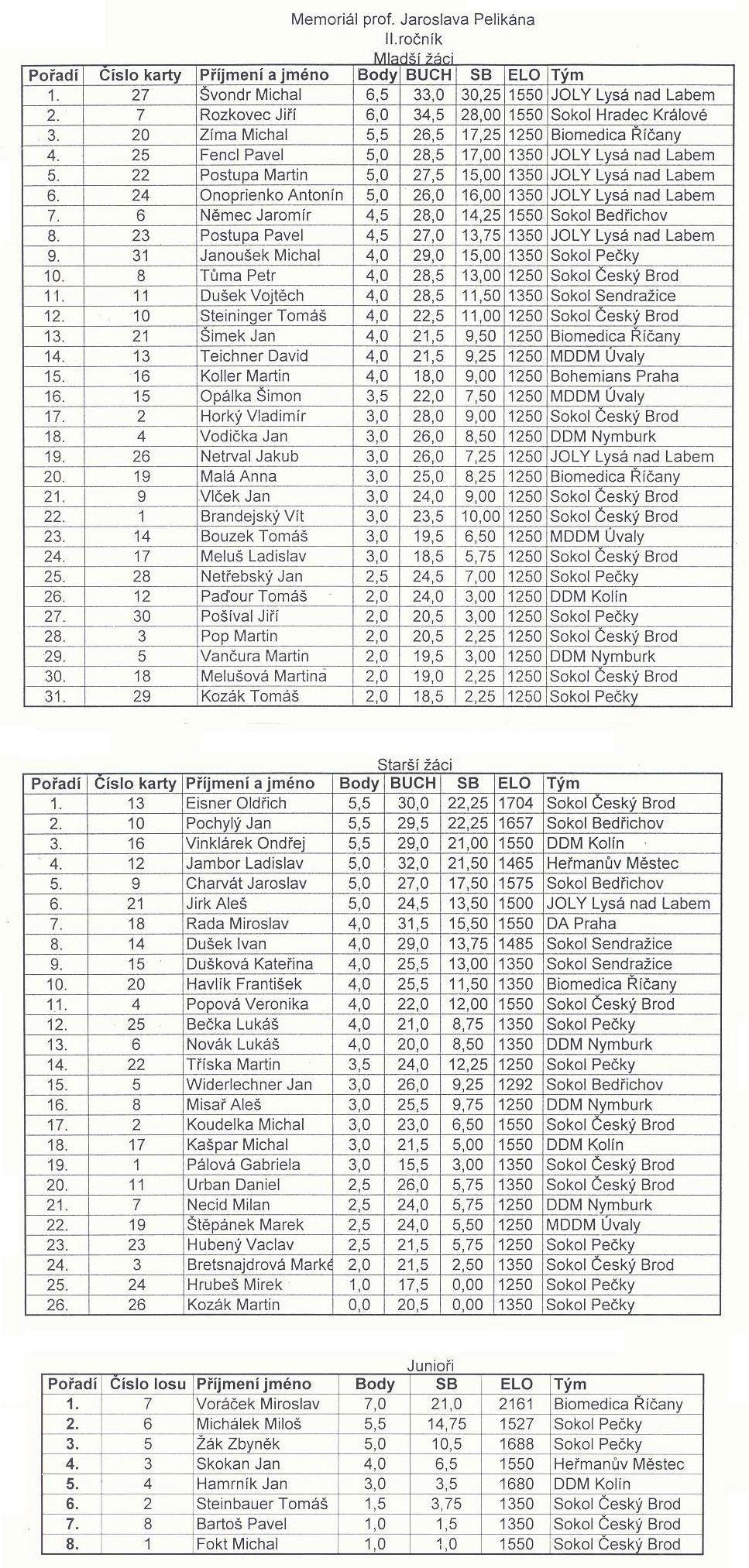 06.05.2000 | Memoriál prof. Jaroslava Pelikána. . | Český Brod | výsledky | ||||