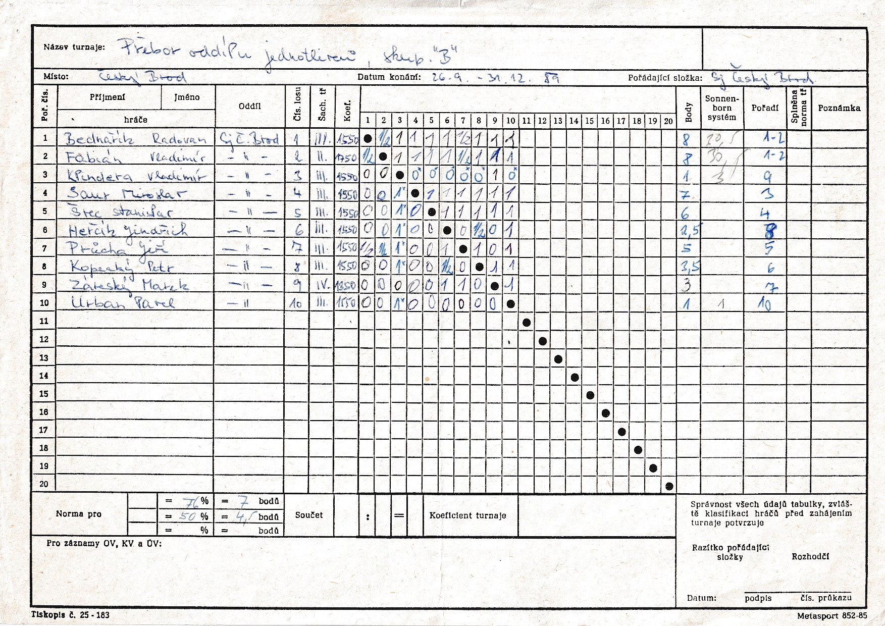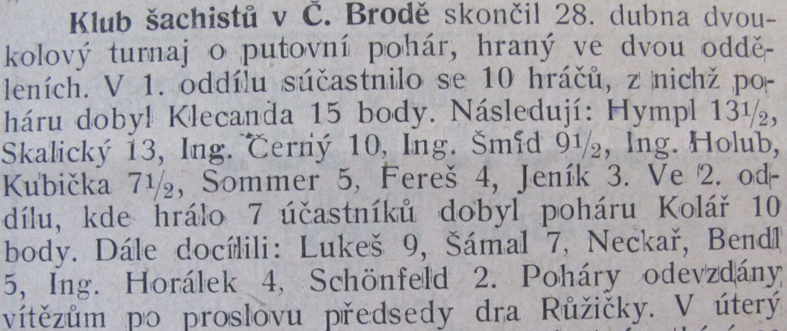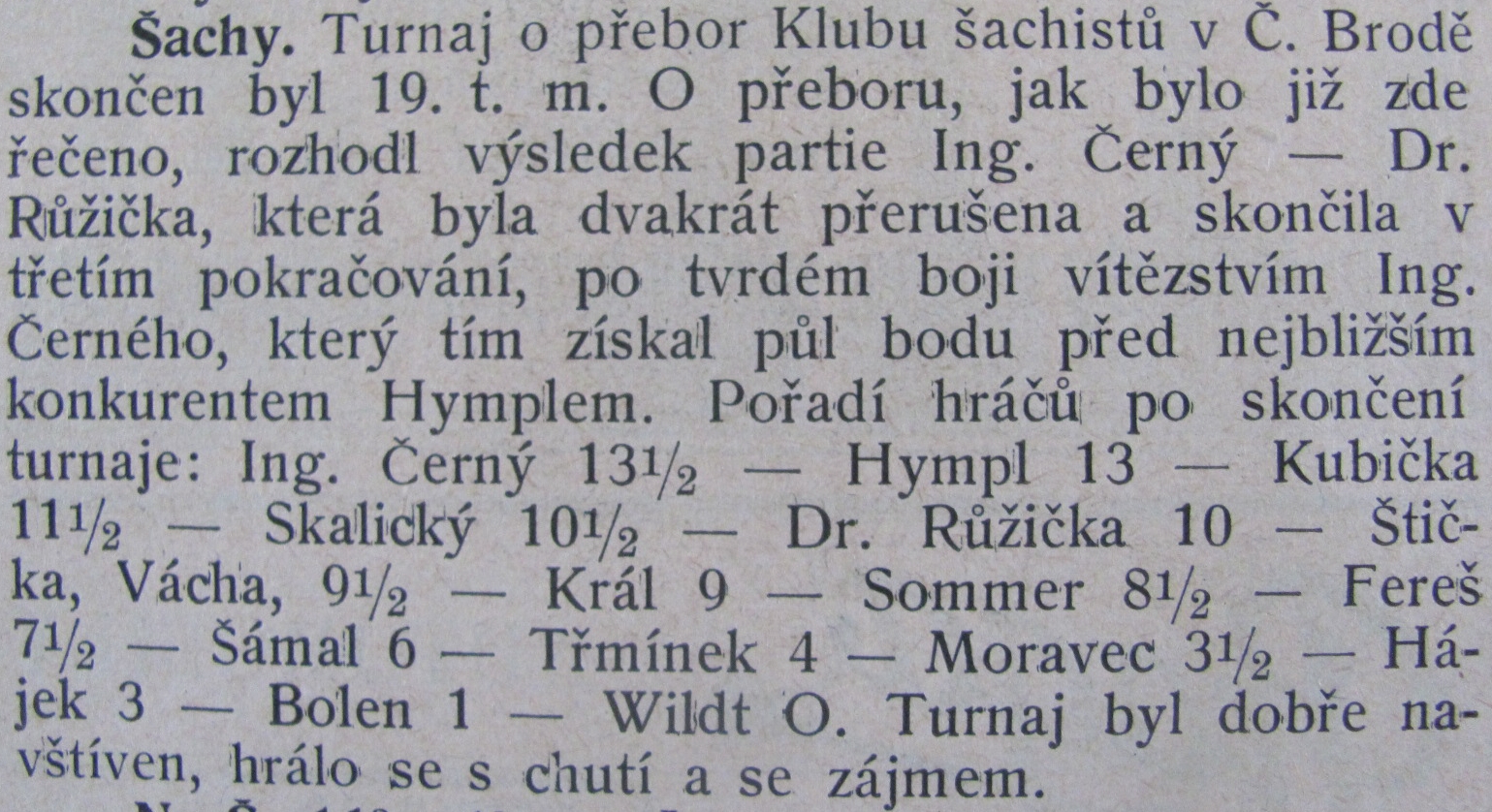 08.09.1935 | Klubový bleskový turnaj | Český Brod | výsledky | ||||