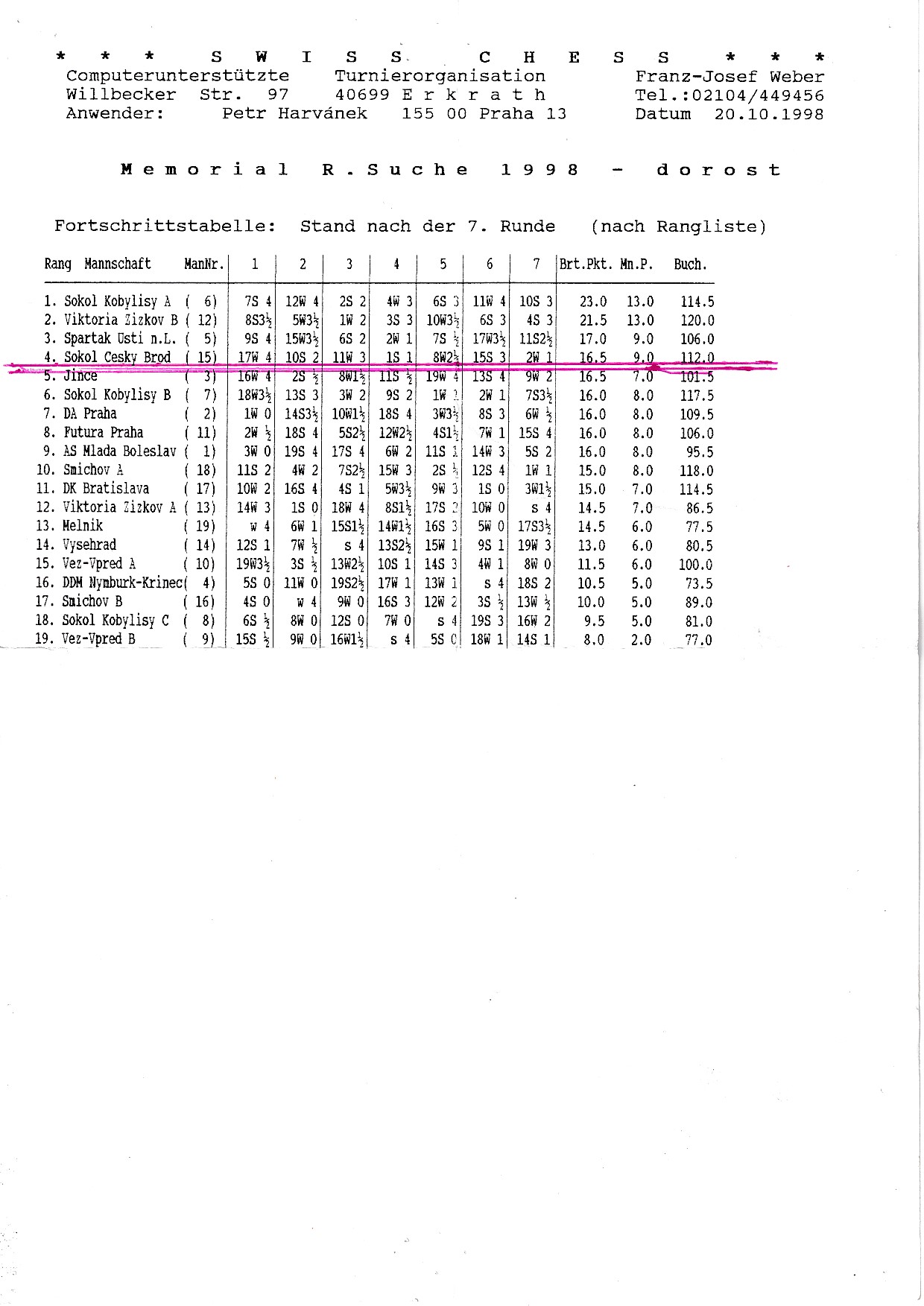 20.10.1998 | Memoriál IM Růženy Suché-Dobiášové | Praha Smíchov | výsledky | ||||