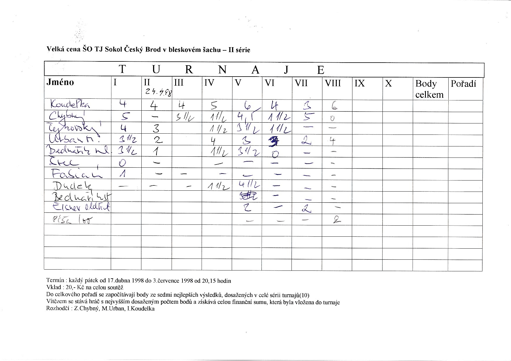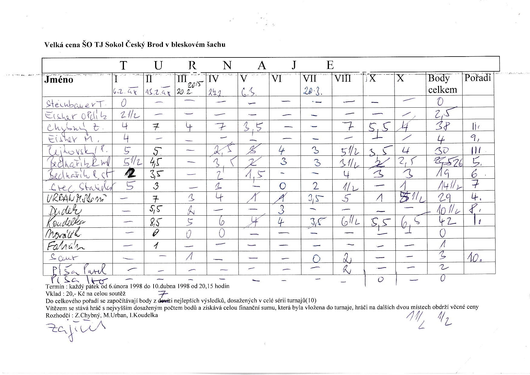 IV – VII 1998 | Velká cena ŠO TJ SČB v blesk. šachu | Český Brod | výsledky | ||||