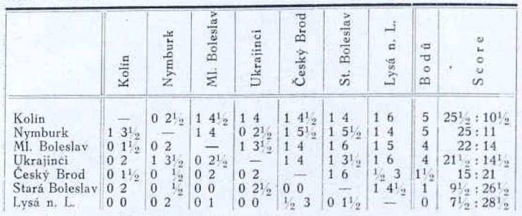 ? – IV 1935 | Klasifikační turnaj | Český Brod | výsledky | ||||