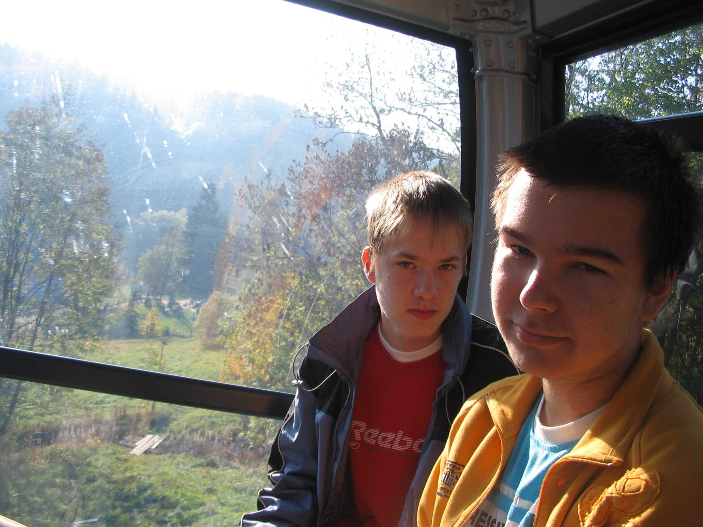 V kabině lanovky, Vít Moravec (vlevo) a Jan Fiala