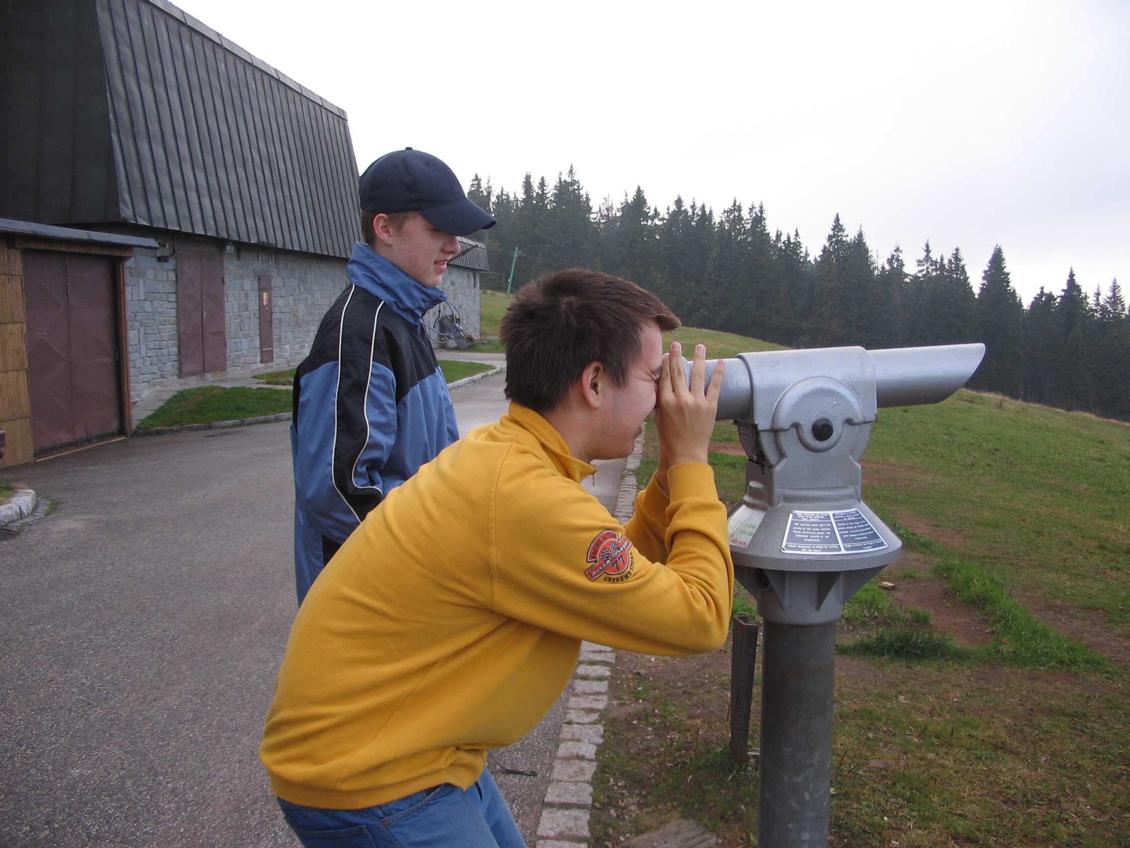 U dalekohledu, Jan Fiala (vpředu) a Vít Moravec
