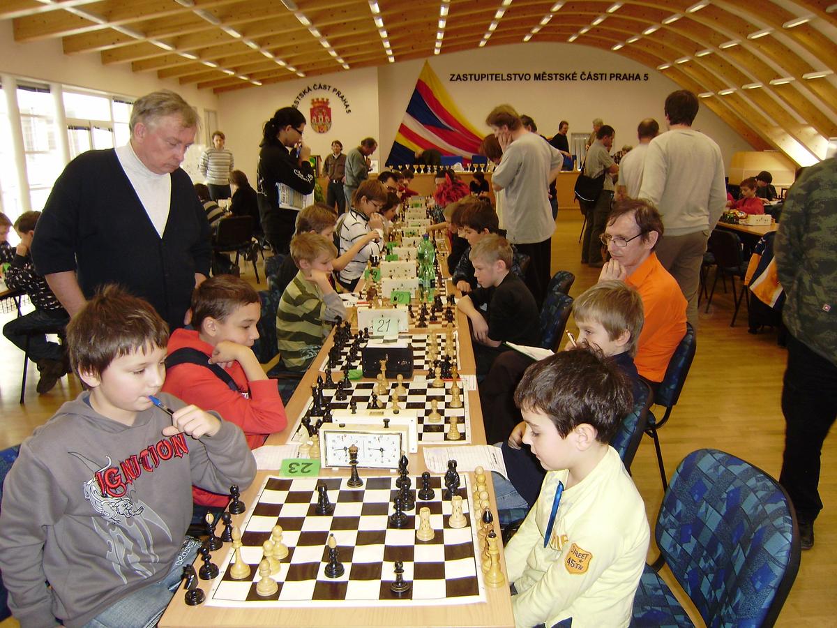 Zdeněk Chybný (v bíločerném) sleduje partii Robina Šíchy
