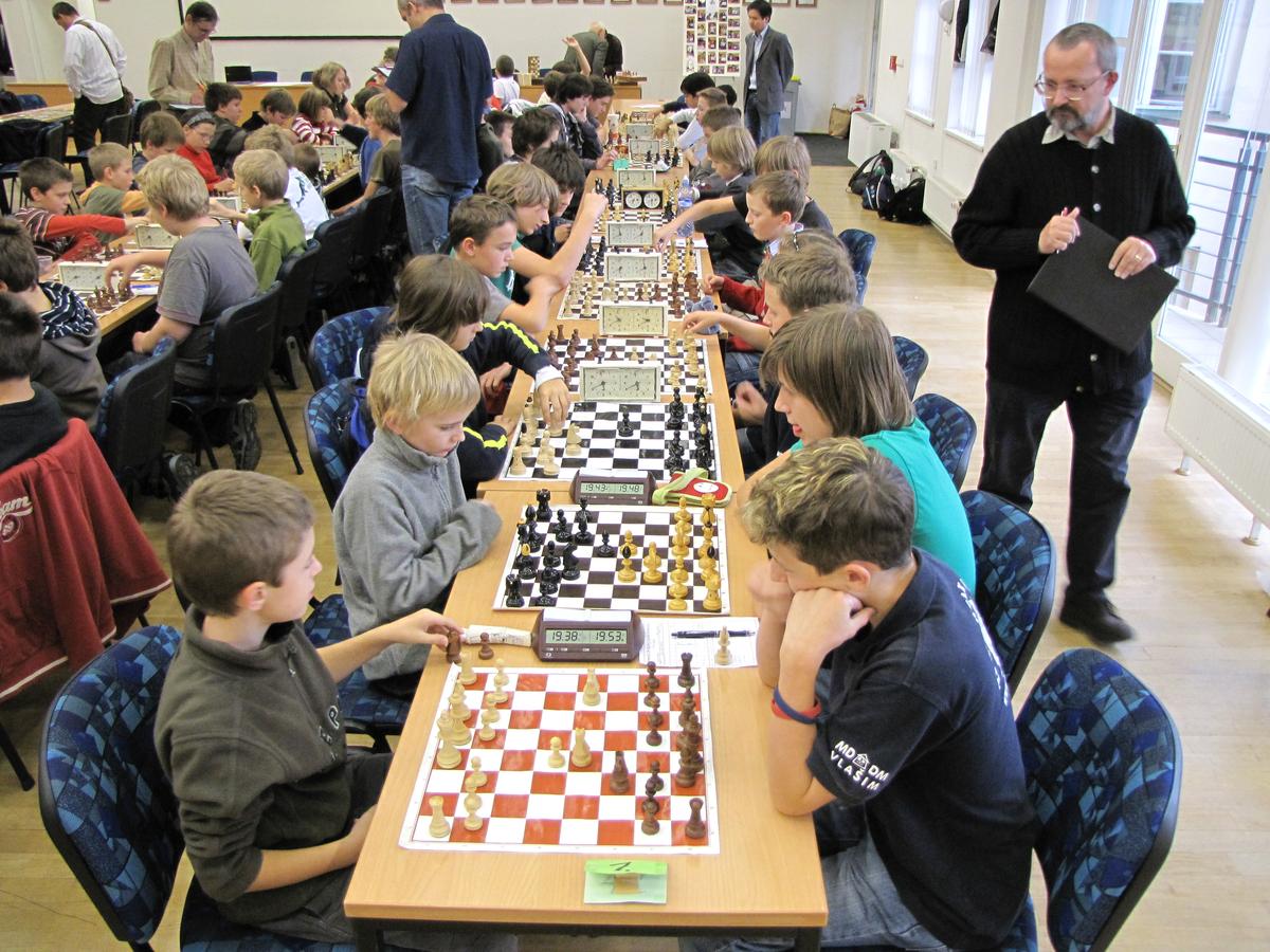 Sokol Český Brod A (vlevo) v souboji s vítězným družstvem MěDDM Vlašim A