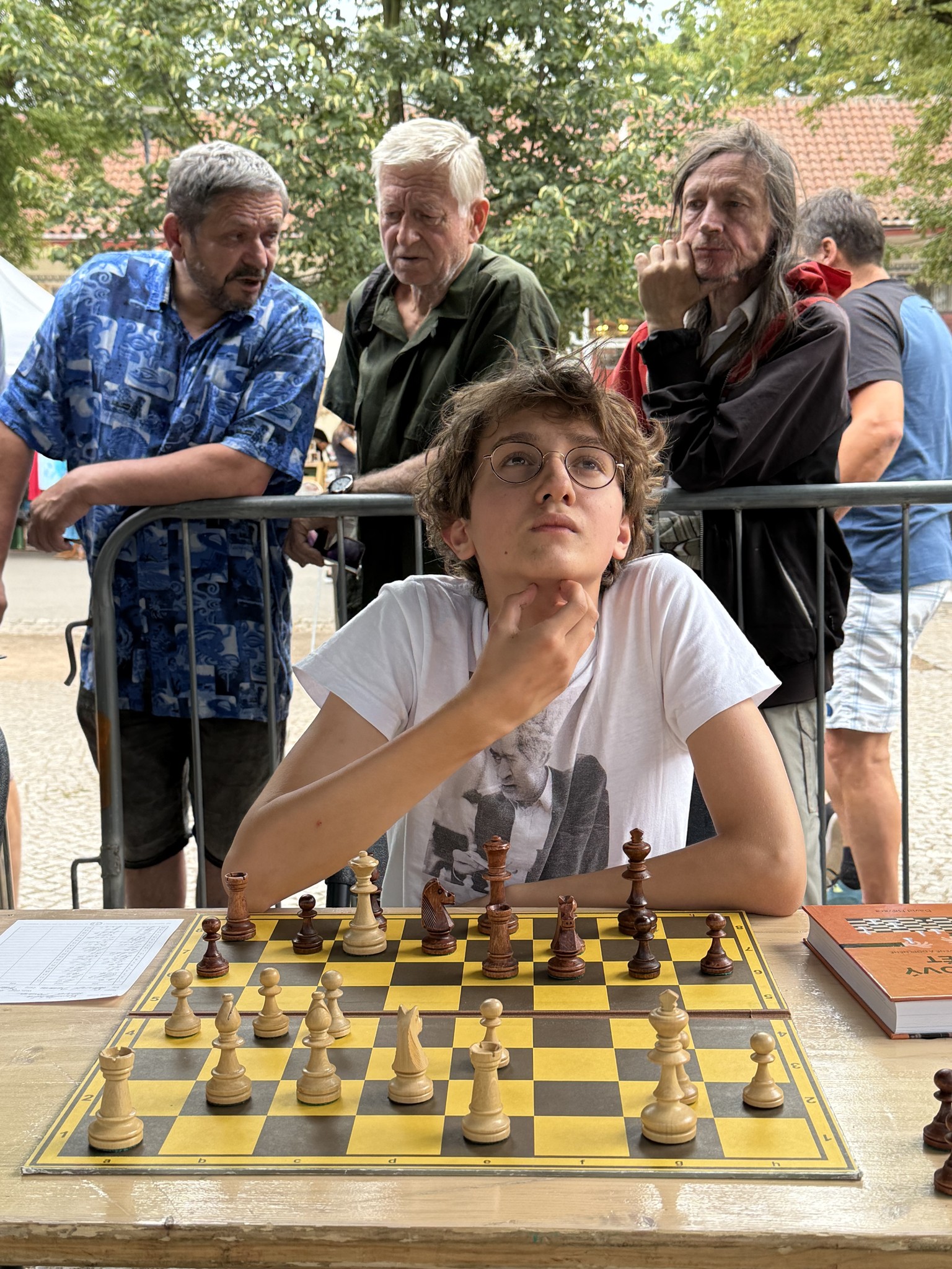 V srpnu loňského roku se František Jiří Lebeda v Poděbradech v rámci oslav 120 let Poděbradky zúčastnil simultánky s Davidem Navarou. Partii sice prohrál, ale zanechal dojem: "4. Mladík František Lebeda hrající na poslední desáté šachovnici přišel v tričku s bývalým mistrem světa Michailem Talem a hrál pěkně divokou partii."