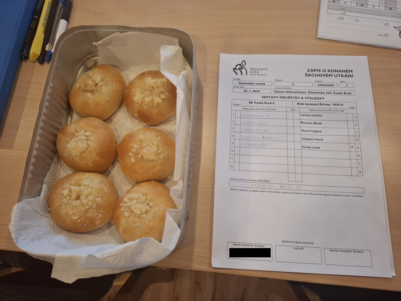 A třetí nádhernou partii odehrál Fanda Lebeda, vedeme 3:0, takže i kdyby zbývající dvě partie nedopadly dobře, do Vlašimi pěšky nepůjdeme.