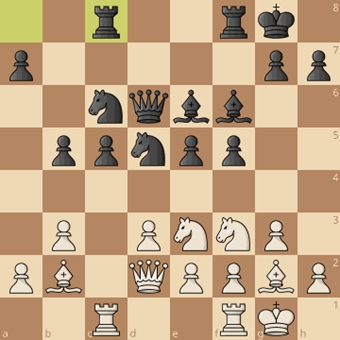 Bílý může získat příjemnou výhodu díky lepší struktuře… 17. Jxe6! Dxe6 18. Da4. Bílý stojí díky lepší struktuře příjemně. Honza v partii vyměnil na c6 jezdce, po dobrání pěšce na c2 není ale struktura nijak pro bílého výhodná a Honza tak musí využít rychlejšího vývinu figur.