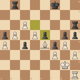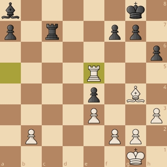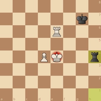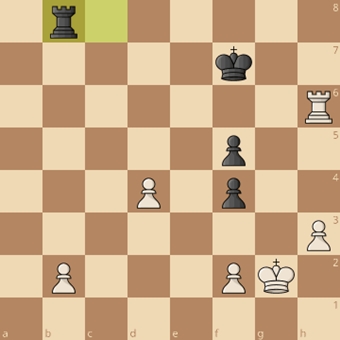 Nejjasnější cestu k výhře dává 44. Kd5 Kf7 45. Vf2 a černý král je odříznutý, bílý postupně vyhraje, uplatní techniku mostu. V partii ale zahrál Martin 44. Ke5? a jsme v rozmezí remízy. Problém totiž je, že po 44…Kf7 se nedá král dál odřezávat a vstoupí tak před pěšce.