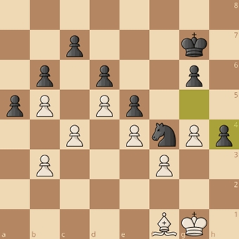 Vznikla zajímavá koncovka, kde to vypadá, že černý má hezkého koně, a mohl by tak mít šance. V pozici se ale i tak nemůže černý k ničemu dostat. Pokud zahraje g5, tak nikdy neaktivuje krále a pokud dostane krále na g5, tak stejně nemá co hrát dál. Prostě černej les pěšců nejde prostoupit a bílej kostelník kryje všechny slabiny. Hráči odehráli ještě 19 tahů a pak se dohodli na remíze. Vedeme 3,5 – 2,5.